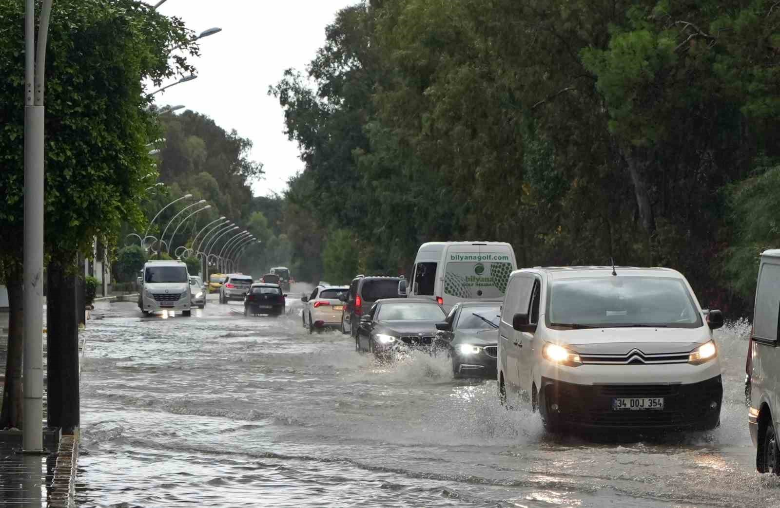 Antalya’nın Serik ilçesi Belek turizm merkezi 2 gündür etkili olan sağanak yağış sonrası adeta sular altında kaldı. Merkezde yollar göle döndü, araçlar sularda mahsur kaldı. Araç sürücüleri plakaları su içinde kaybolunca suların çekilmesini bekledi. Plakalarını bulamayan sürücülerin imdadına ise zabıta ekipleri yetişti.