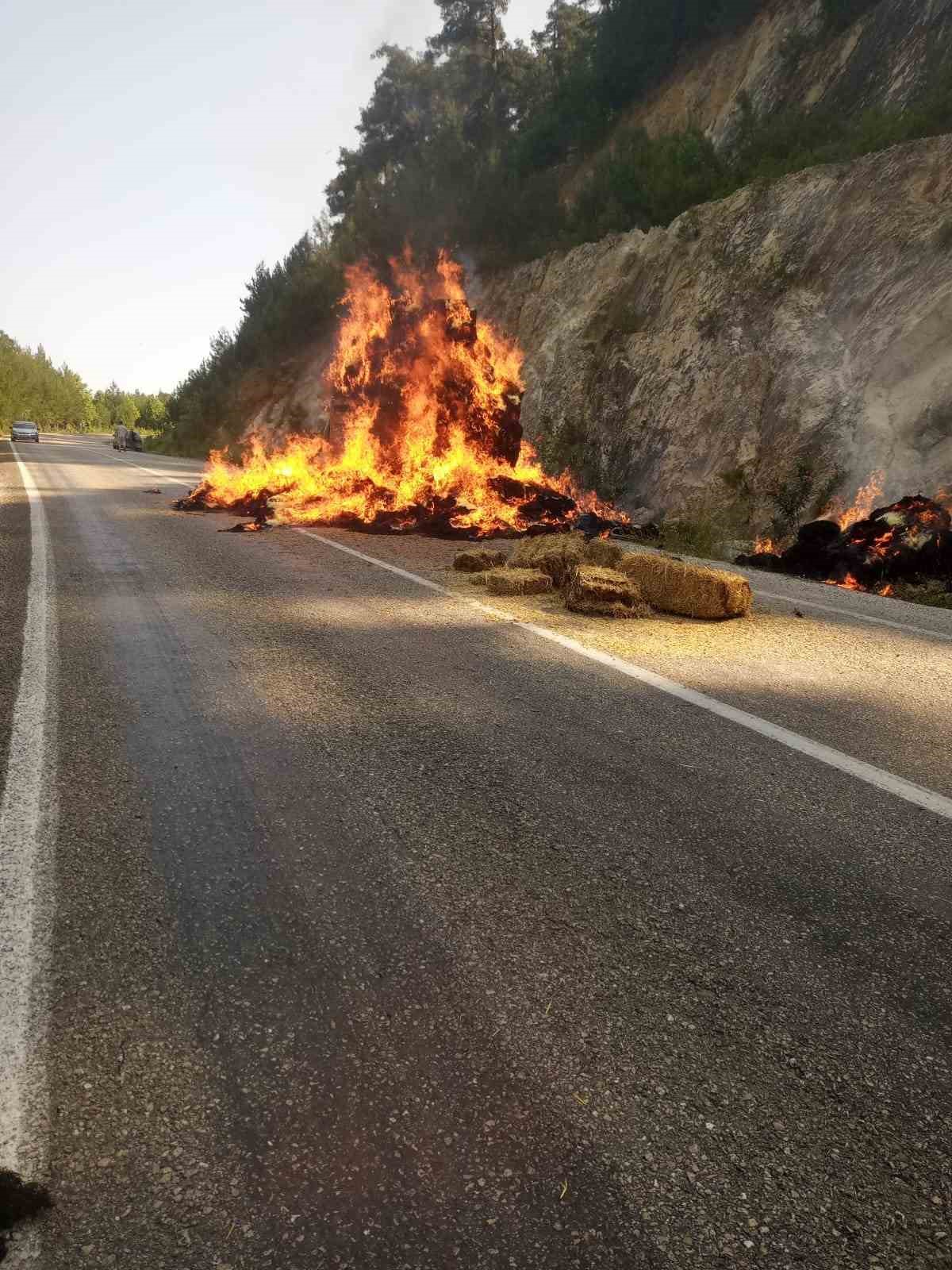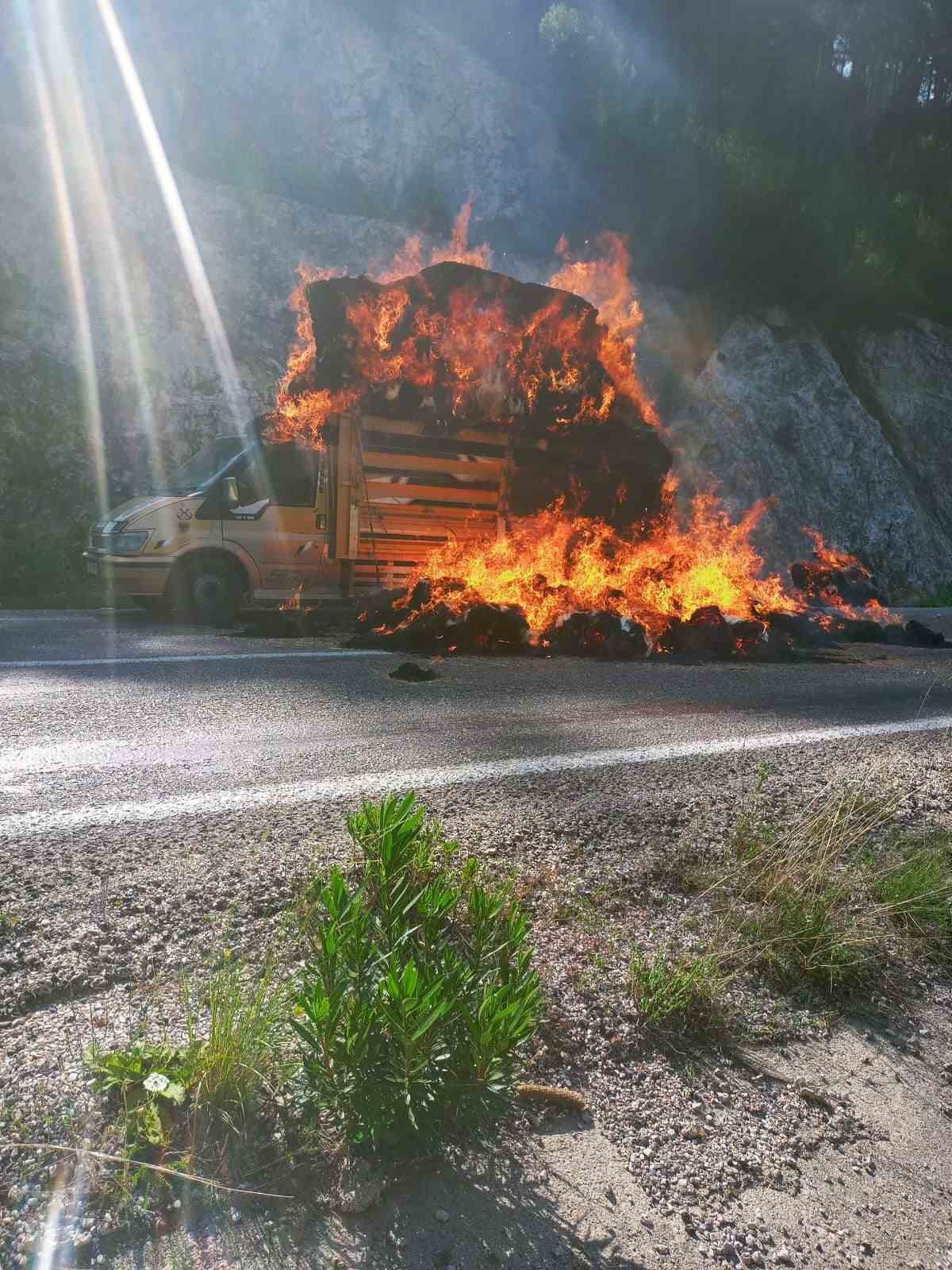 Adana’da saman balyası yüklü araç alev alev yandı.