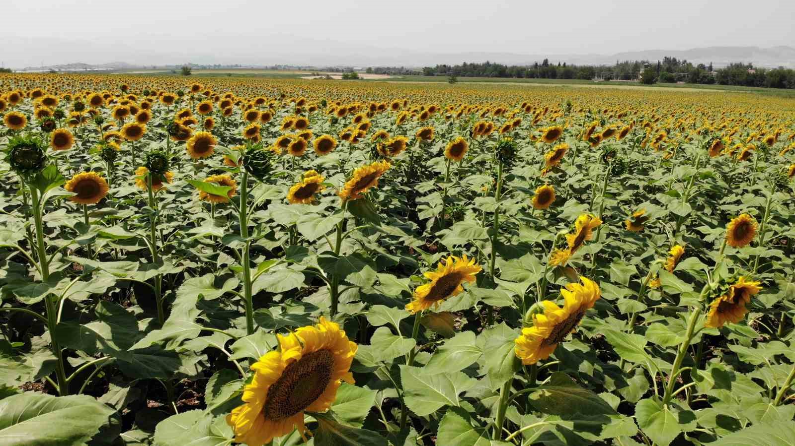 Üretici Yahya Yenen, “Bölgemiz Türkoğlu ilçesine bağlı Kadıoğlu çiftliği. Bölgemizde birçok ürün yetişiyor. Ayçiçeği, hububat, yağlık ve çerezlik ay çiçek üretimi de yapılıyor. Şu anda tam günebakan dediğimiz görüntü var. Görsel şölen oluşturuyor ve üretim son hızla devam ediyor” diye konuştu.