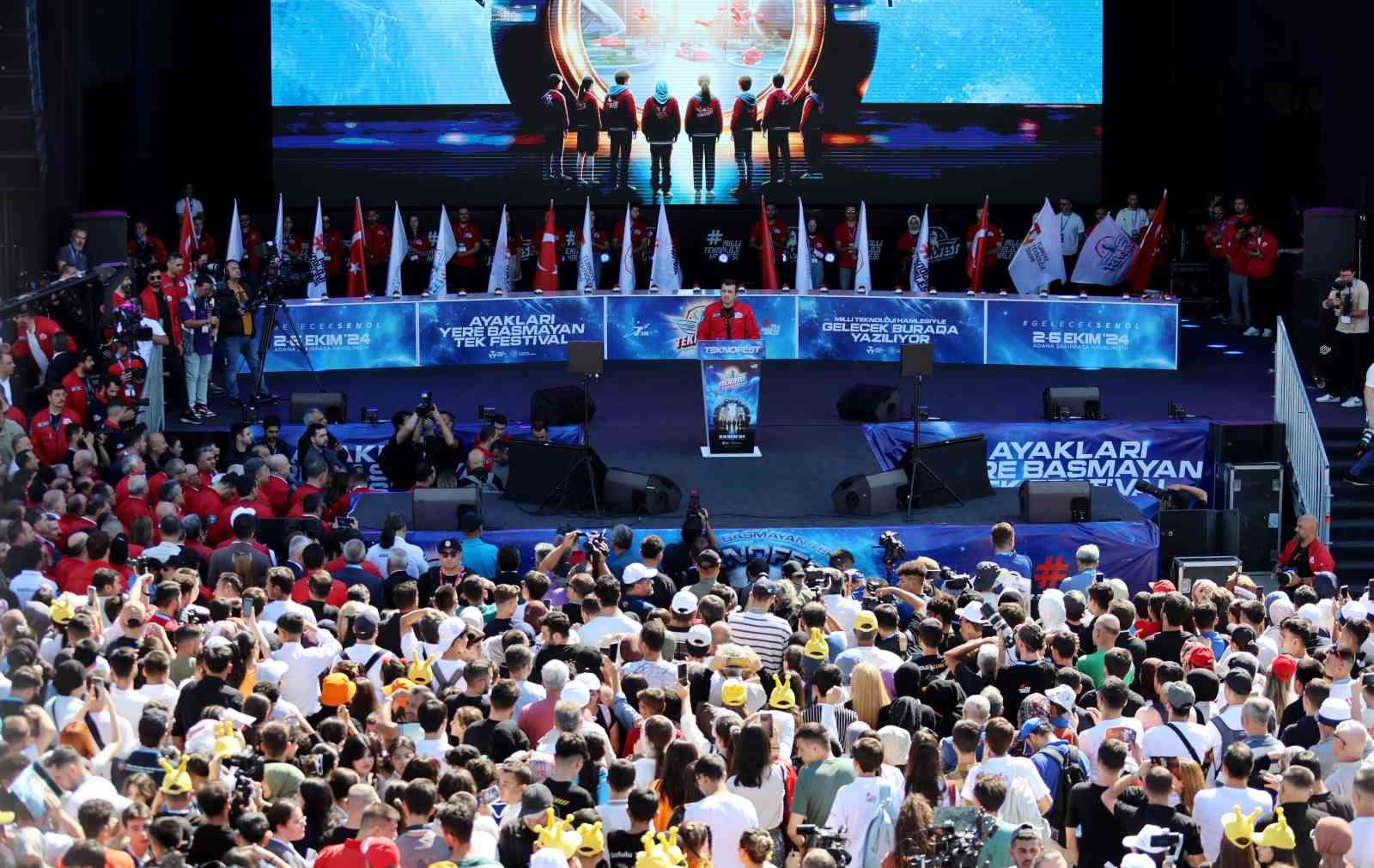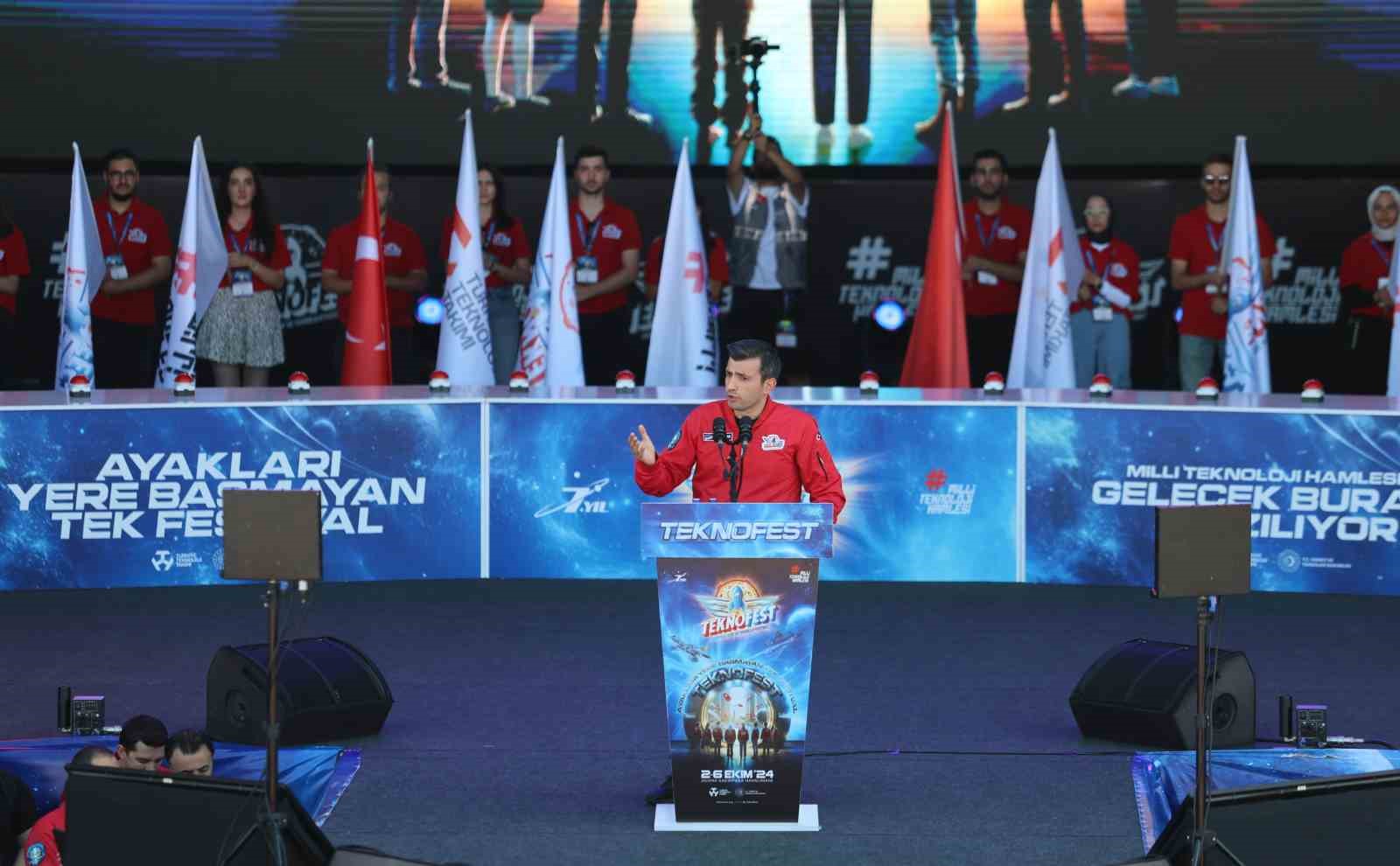 “TEKNOFEST sadece festival değil, çocuklarımızın geleceğine şekil veren gençlik hareketidir. TEKNOFEST, değişimdir, umuttur. Dünyanın en büyük teknoloji organizasyonunda yeniden bir araya geldik. 2018’den bu yana tam 27 ilimizde teknoloji yarışmaları düzenledik. Gençlerimizin teknolojiye duyduğu ilgiyi bir adım her defasında öteye taşıdık. Şimdiye kadar 150’den fazla girişim teknoloji şirketi kurdu. Aralarında 21 ülkeye ihracat yapan da milyonlarca liralık yatırım alan da var. Adana’nın meşhur kebabını takım adı olarak seçen bir takımımız var. 1.5 Adana 11 yıl önce 11 kişiyle tek bir takım olarak yola çıktı. Bugün 9 farklı alanda mücadele eden kocaman bir aile oldular. Dünya çapında şampiyonluklar kazanarak göğsümüzü kabarttılar. Geriye kalan 7 yılda Azerbaycan’a kadar uzanan 9 farklı TEKNOFEST’i başarıyla gerçekleştirdik. TEKNOFEST düzenleyerek bu hareketi daha da genişletmeyi hedefliyoruz. 50 farklı teknoloji yarışmamız var. Aralarında nükleer enerjilerden, kuantuma kadar birçok temanın bulunduğu 11 yeni yarışmamız var. 2024’den 1 milyon 600 binden fazla genç kardeşimiz teknoloji yarışmalarına başvurdu. 2018’den bu yana yarışmalarımıza başvuru sayısı 4 milyonu buldu. Toplamda 10 milyon ziyaretçiyi ağırladık.”