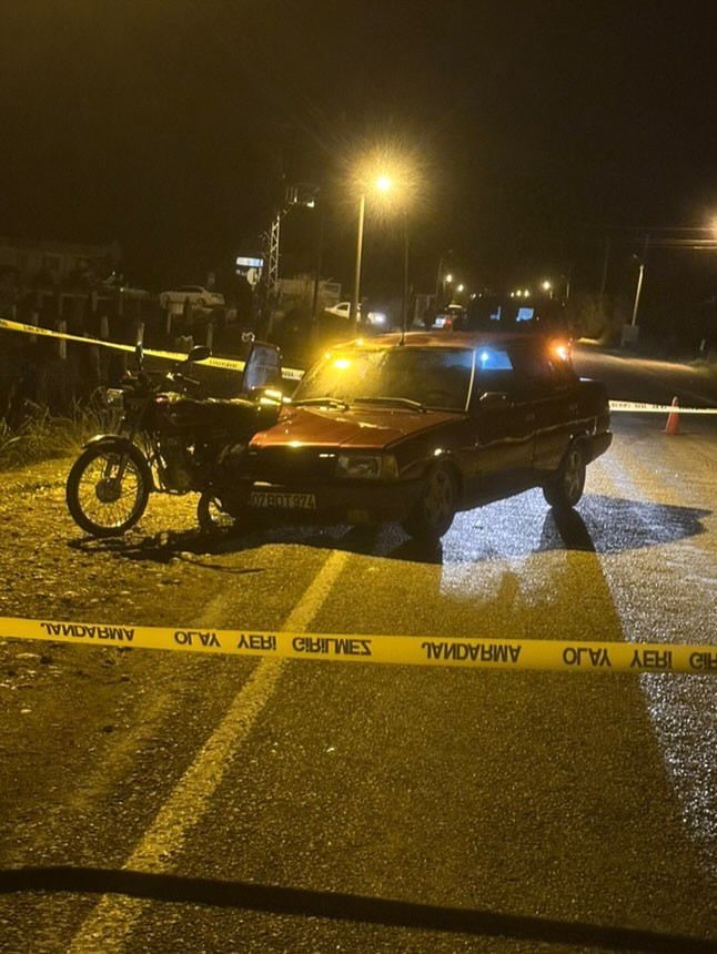 Kaza gece saatlerinde Serik ilçesi Tekke mahallesi Zeybekler mevkiinde meydana geldi. Edinilen bilgiye göre İzzet B. idaresindeki 07 BDT 974 plakalı TOFAŞ marka otomobil yol kenarında park halinde bulunan Ali Özdemir (52) idaresindeki 07 YEA 52 plakalı motosiklet çarptı. Çarpmanın etkisi ile motosiklet sürücüsü yaşamını yitirdi. Kazada otomobilde yolcu olarak bulunan Fatma Nur Baş da yaralandı.