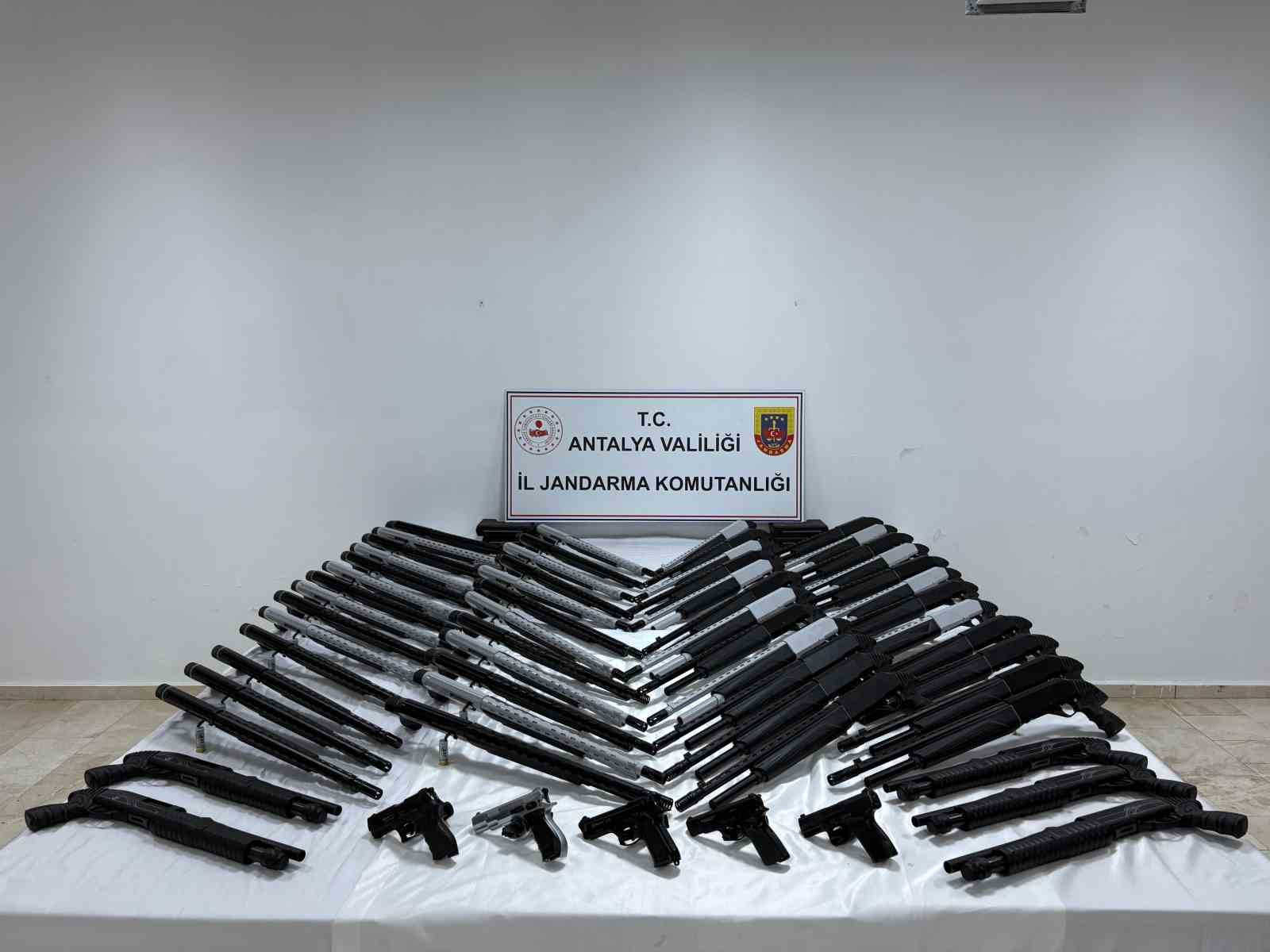 Antalya İl Jandarma Komutanlığı İstihbarat Şube Müdürlüğü ile Serik İlçe Jandarma Komutanlığı ekiplerince savcılık koordinesinde yasa dışı bireysel silahlanmaya yönelik operasyon gerçekleştirildi. Operasyonda, ruhsatsız silah taşıyan, bulunduran ve satışını yaptığı tespit edilen şüphelilere ait çok sayıda silah ve mühimmat ele geçirildi. Yapılan aramalarda 5 adet 9 milimetre ruhsatsız tabanca, 5 tabanca şarjörü ve 55 ruhsatsız pompalı av tüfeği ele geçirildi.