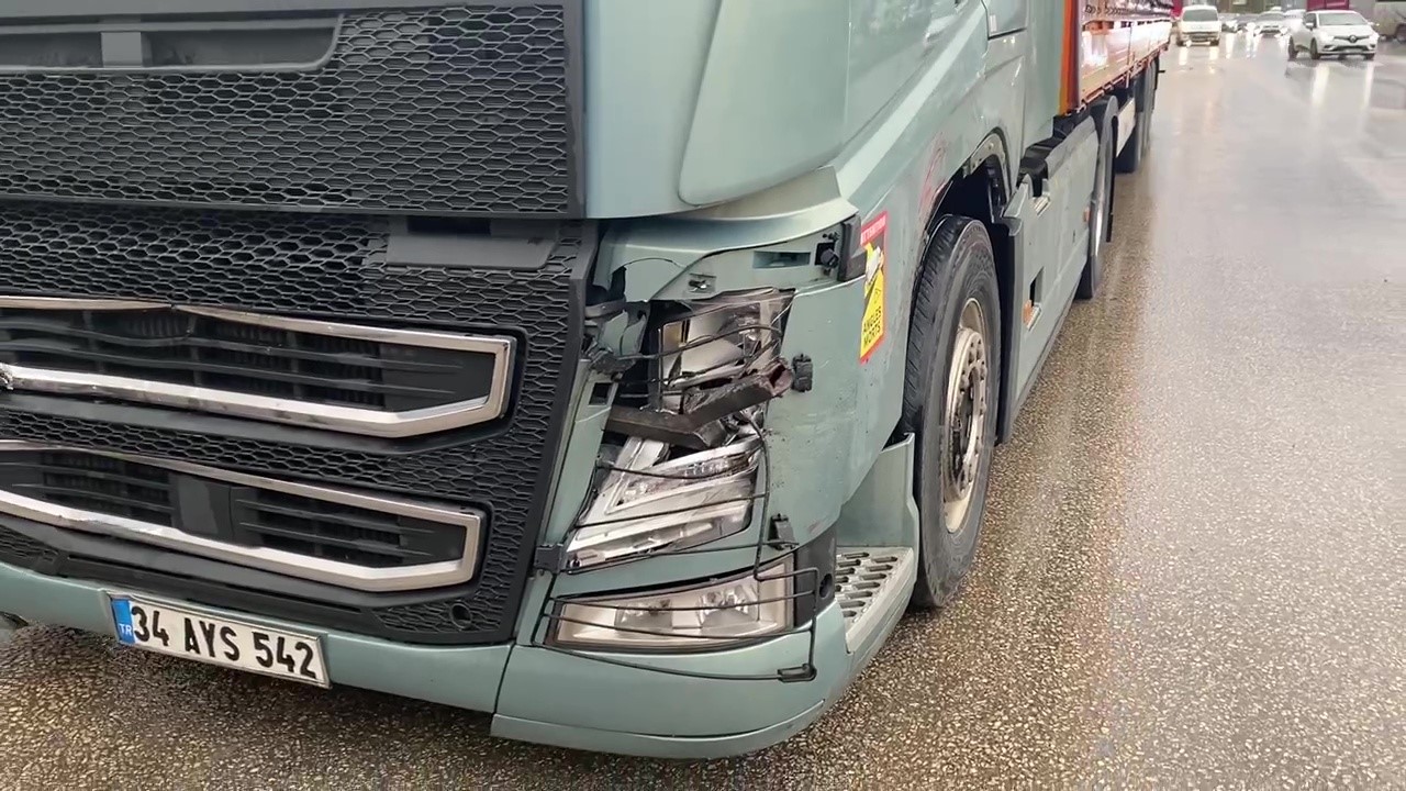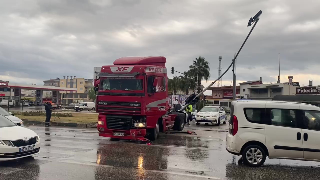 Antalya’nın Serik ilçesinde kavşakta tırların çarpıştığı kazada 1 sürücü hafif şekilde yaralandı. Kaza sonrası devrilen trafik sinyalizasyonun çalışmaya devam ettiği görüldü.