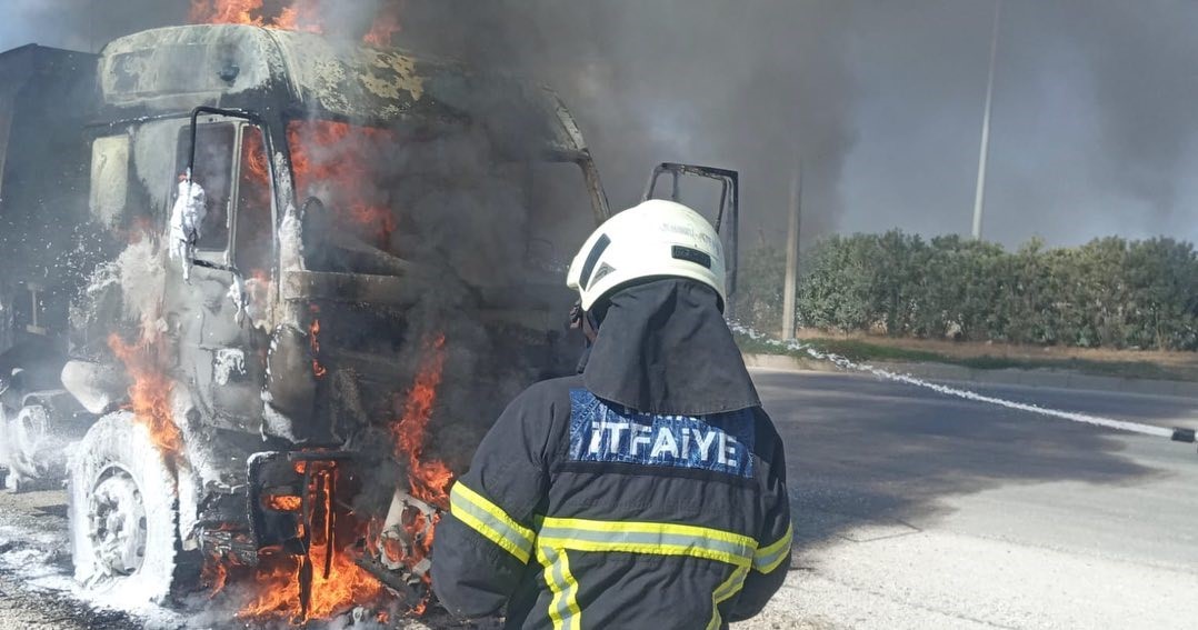 Hatay’da seyir halindeki hafriyat kamyonunda çıkan yangın itfaiye ekipleri tarafından söndürüldü.