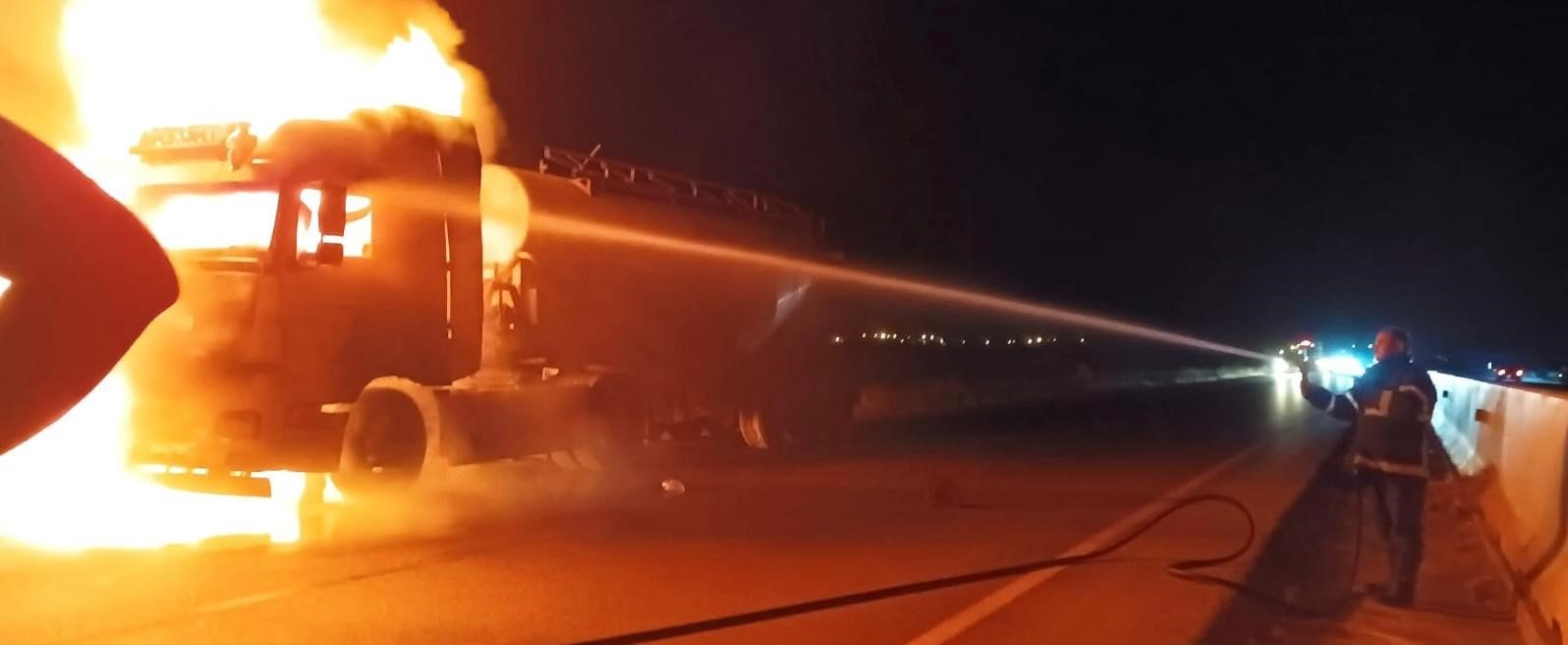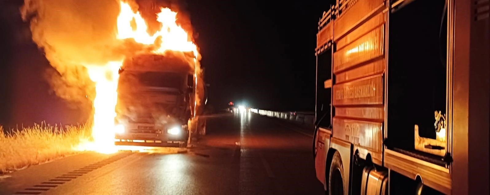 Seyir halindeki tır alevlere teslim oldu