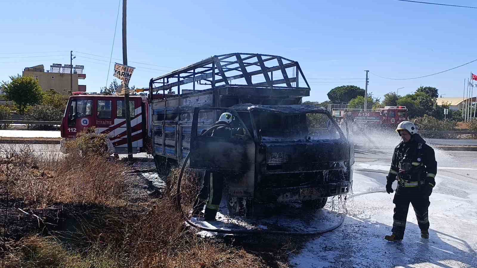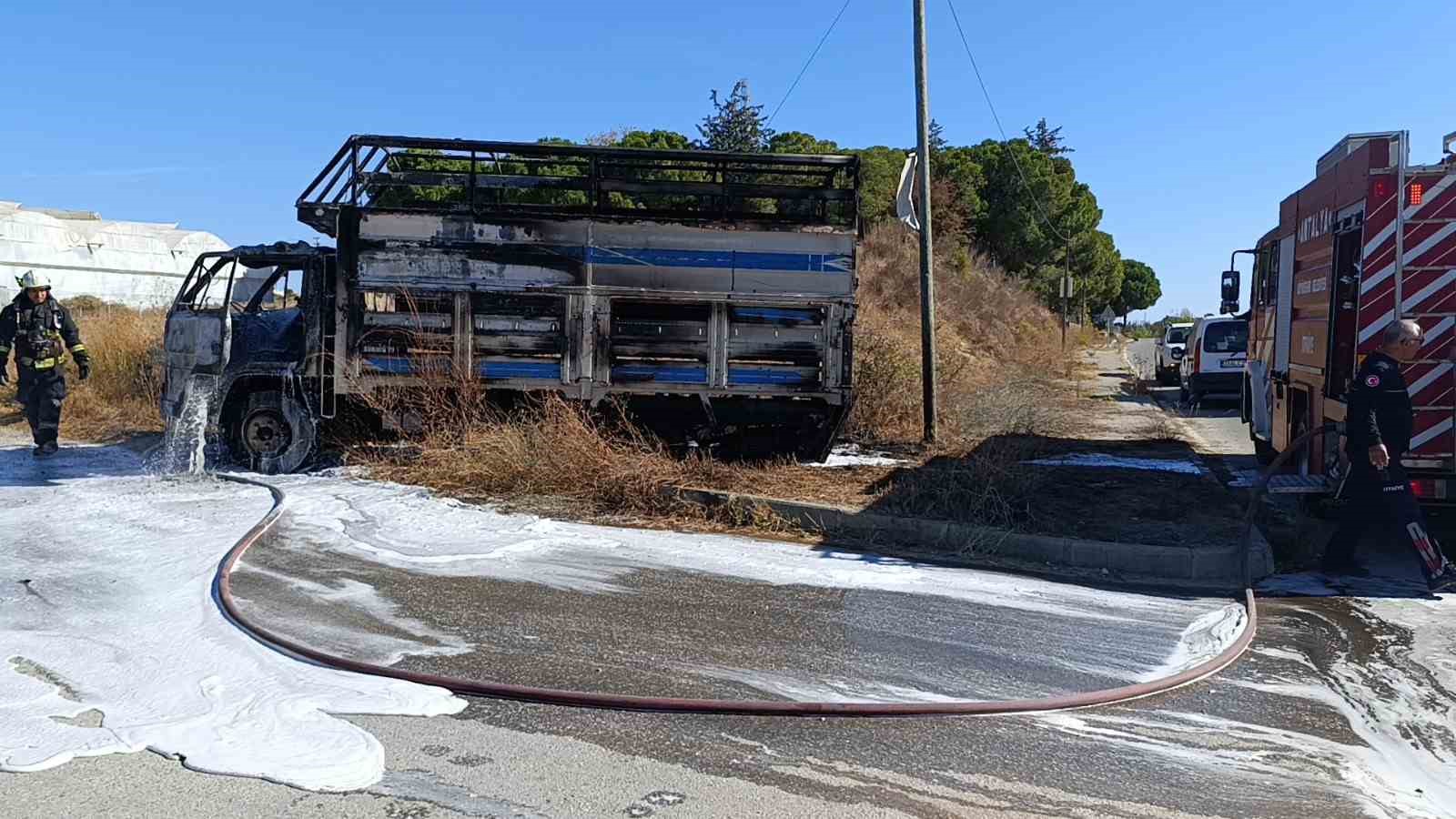 Seyir halindeyken alev alan kamyon kullanılmaz hale geldi