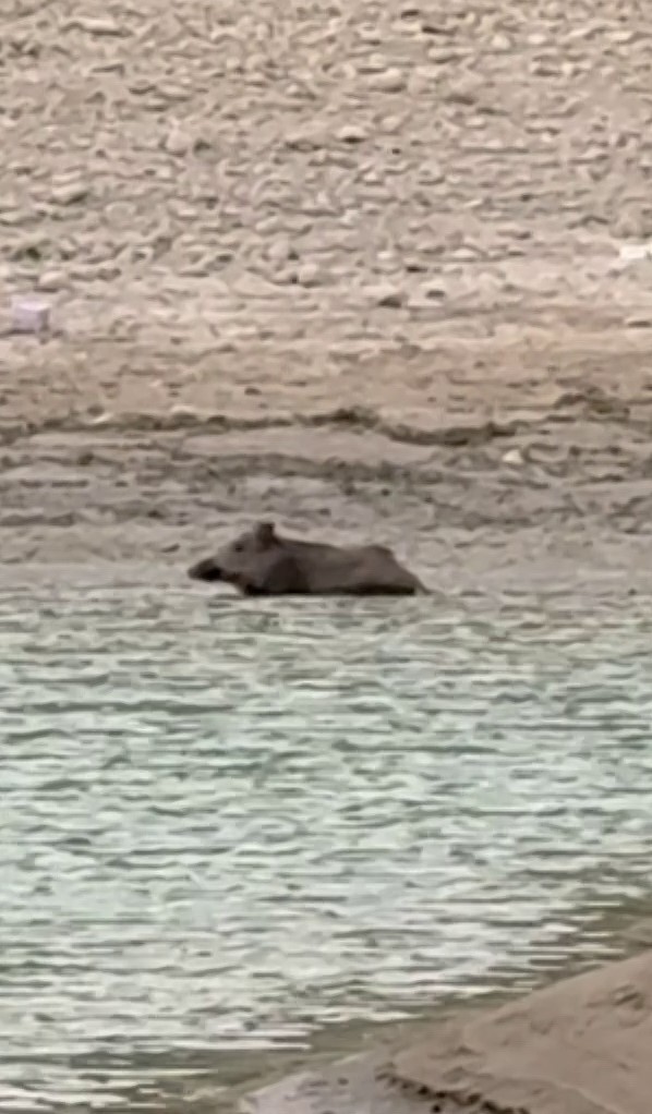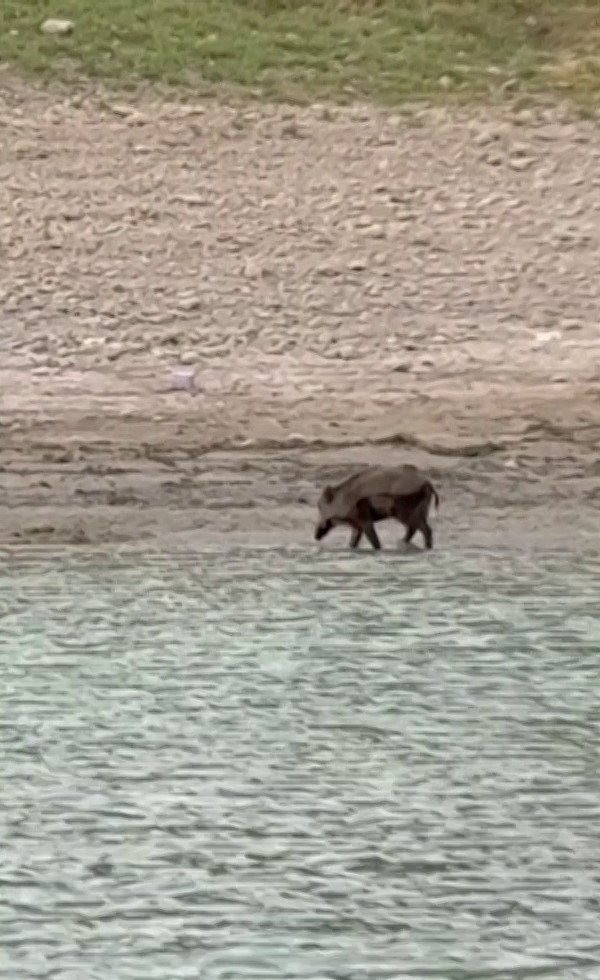 Türkiye’nin en sıcak illerinden Adana’da sıcaktan bunalan bir yaban domuzu, Seyhan Baraj Gölü’nde serinledi. O anlar cep telefonu kamerasına saniye saniye yansıdı.
