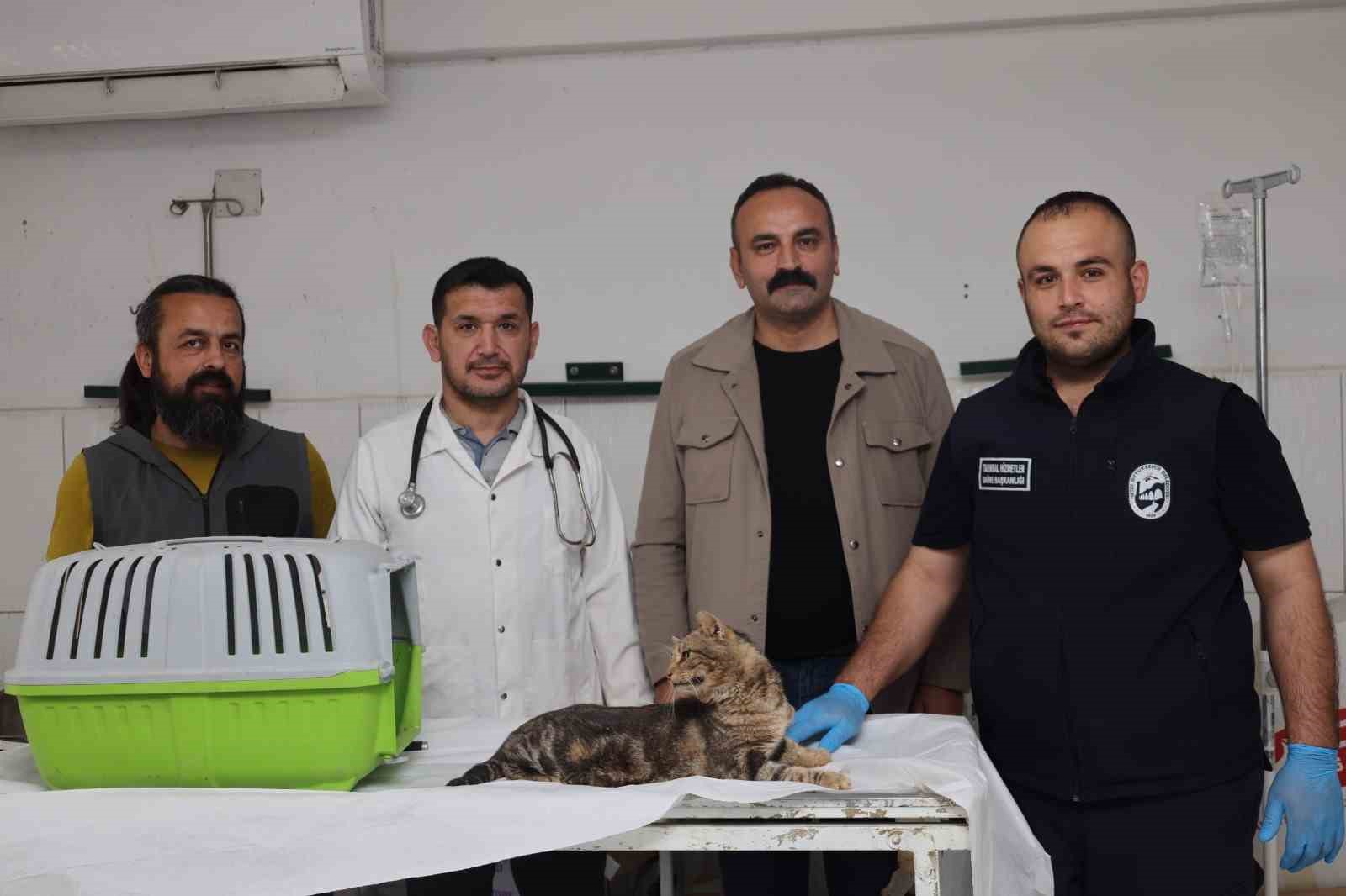 Hatay Büyükşehir Belediyesi ekipleri, sosyal medya üzerinden paylaşılan hasta kediyi bularak tedavi altına aldı.