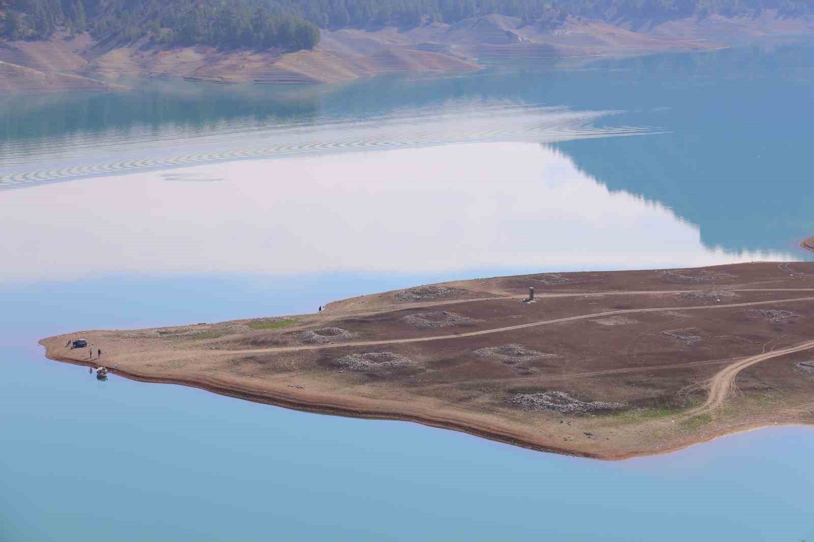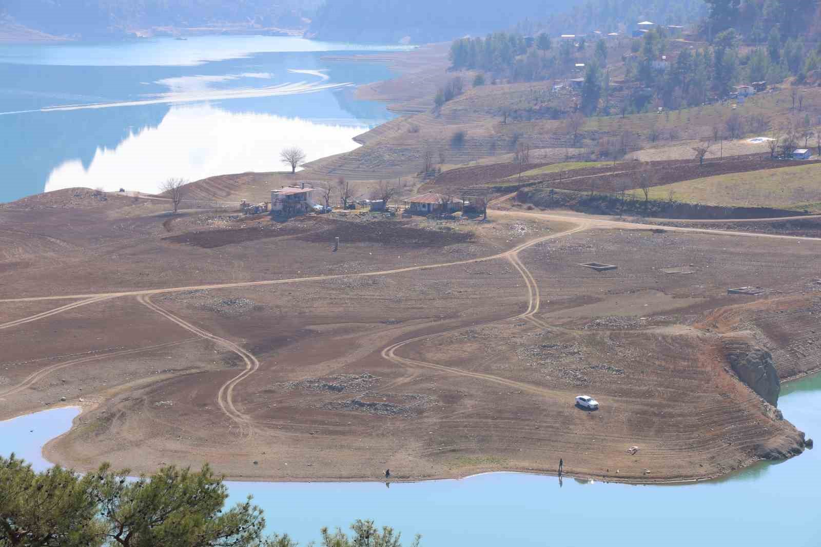 Kahramanmaraş’ın Onikişubat ilçesindeki Menzelet Barajı altında kalan eski yerleşim yeri su çekilmesi sonucu ortaya çıktı.