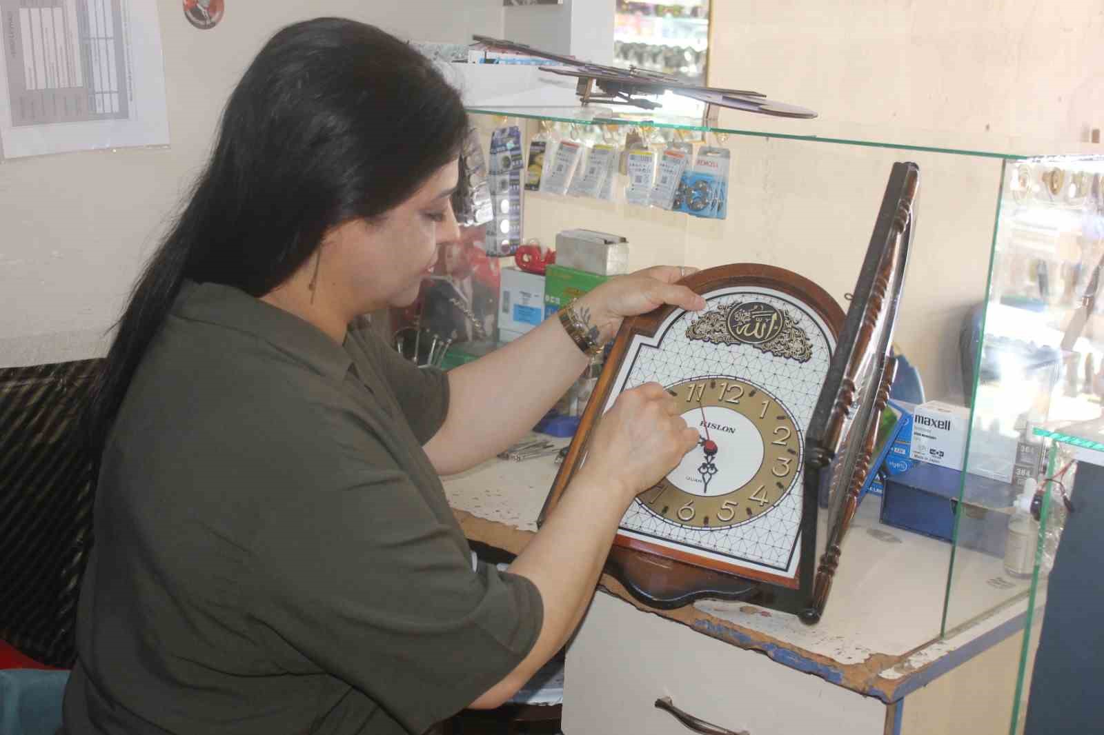 Kahramanmaraş’ta bir kadın tamirci 15 yıldır hem saat satışı yapıyor hem de tamirciliğini yapıyor.