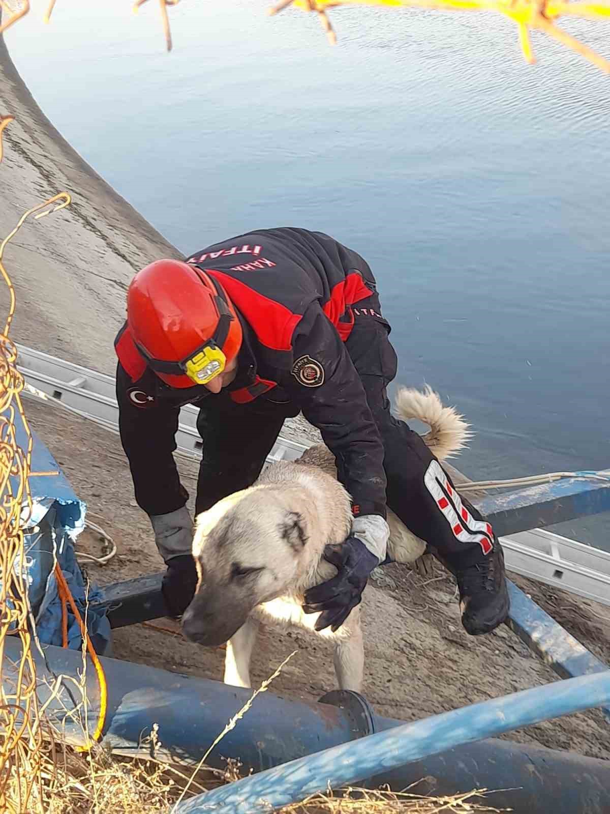 Kahramanmaraş’ta sulama kanalına düşen köpek, itfaiyenin çalışması sonucu kurtarıldı.