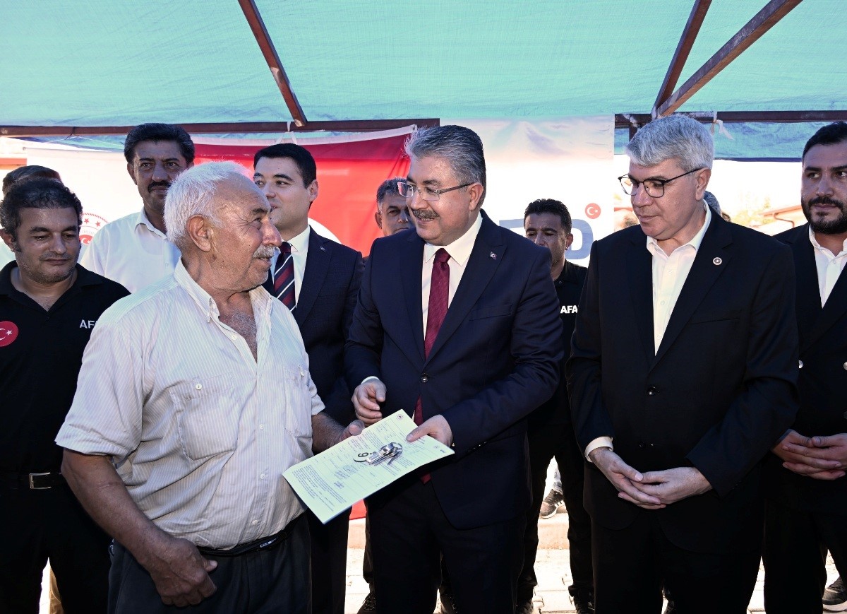 Kahramanmaraş merkezli depremlerden etkilenen Osmaniye’nin Sumbas ilçesinde yapımı tamamlanan Alibeyli köyünde depremzede vatandaşlar için inşa edilen 27 köy evinin anahtar teslimi yapıldı. Deprem bölgesinin hızla ayağa kaldırılması için inşa edilen köy evlerinin anahtar teslim programına katılan Osmaniye Valisi Erdinç Yılmaz, hak sahiplerine anahtarlarını teslim etti.