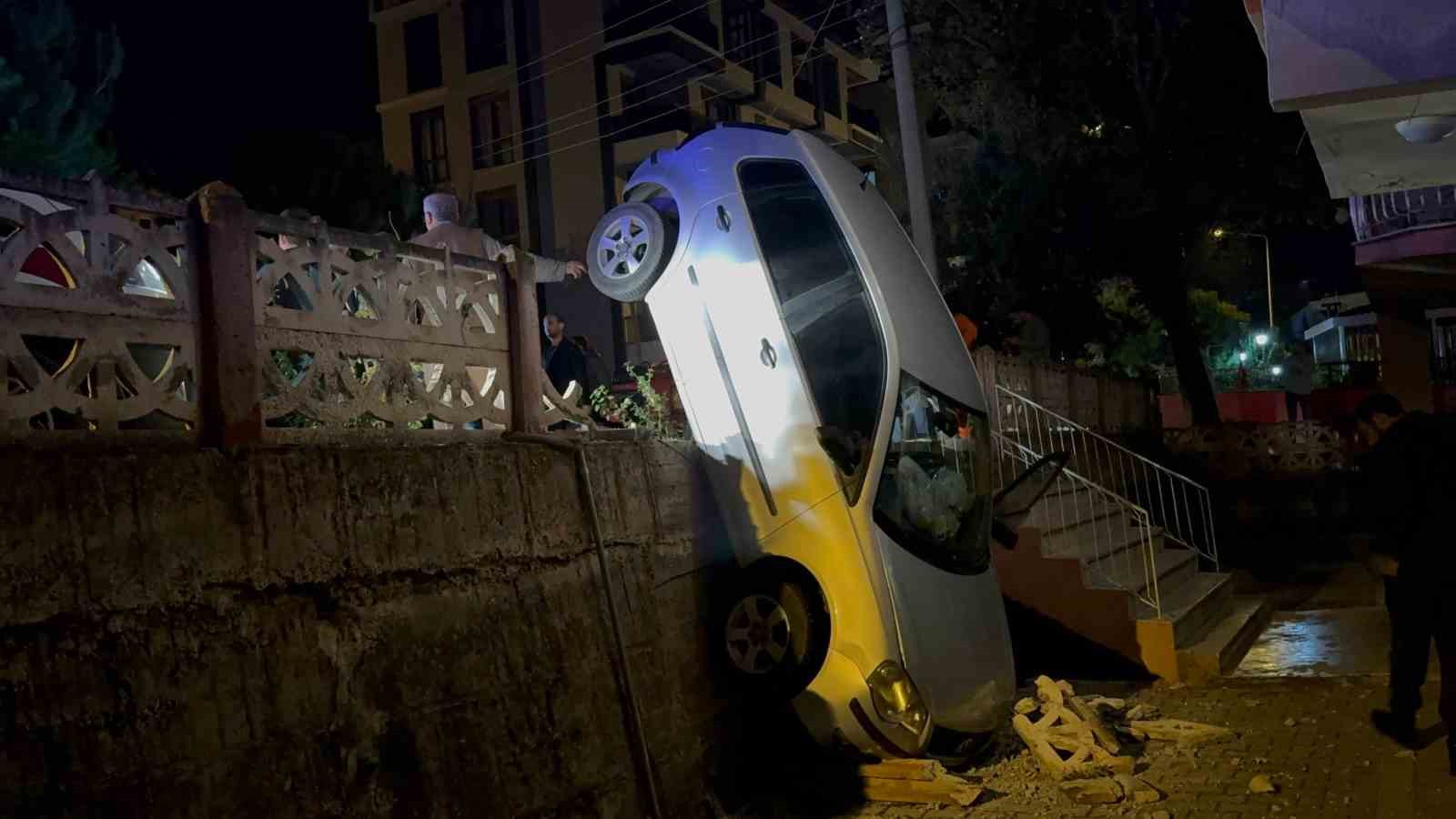 Antalya’nın Gazipaşa ilçesinde sürücüsünün park ederken fren yerine gaza bastığı otomobil, kaldırım kenarındaki beton korkuluklara çarpıp bahçe duvarında asılı kaldı. Kazada araç sürücüsü hafif şekilde yaralandı.