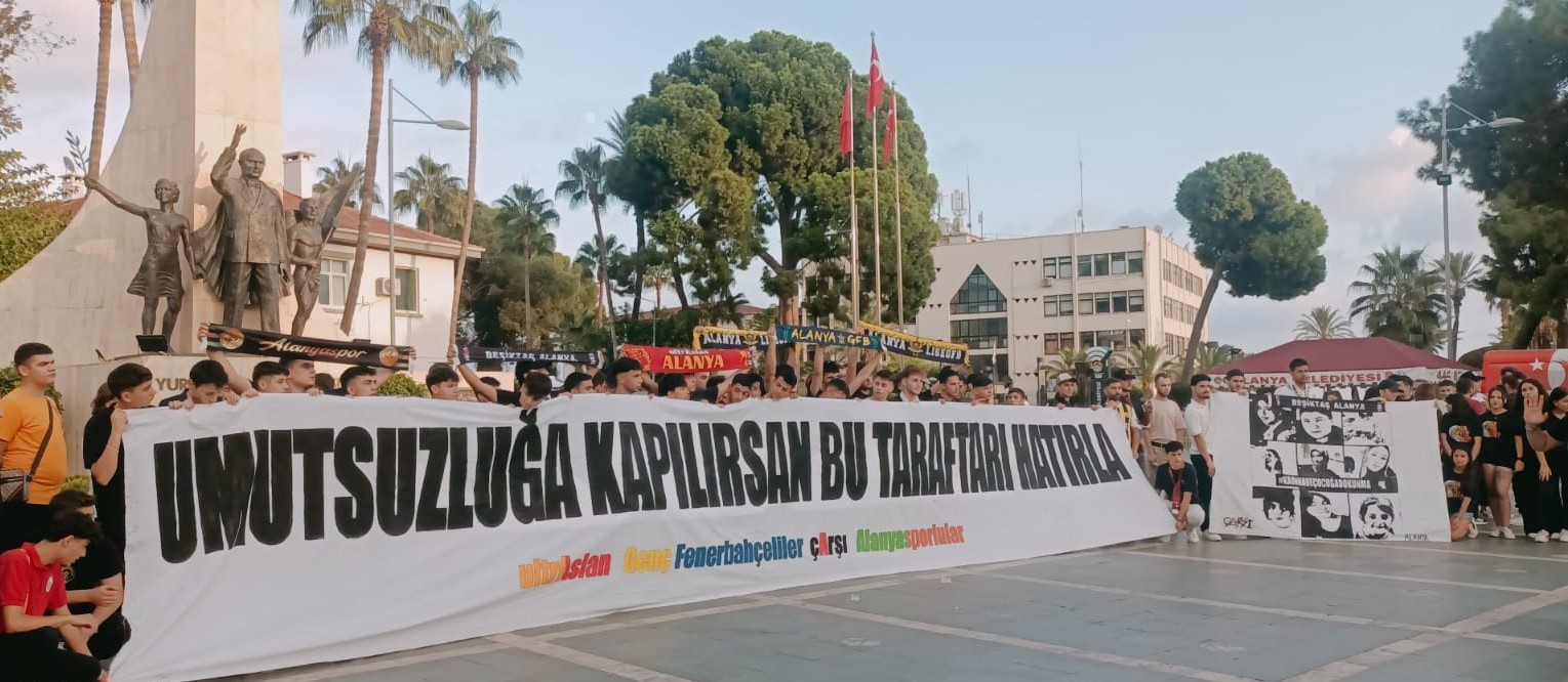 Antalya’nın Alanya ilçesinde taraftar grupları, kadınlara ve çocuklara karşı yapılan şiddeti kınamak amacıyla bir araya geldi.