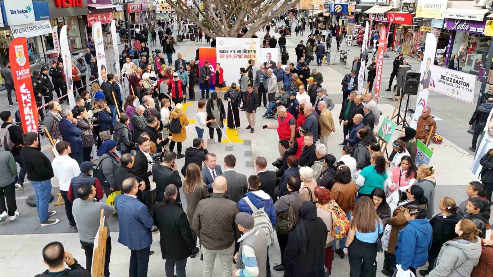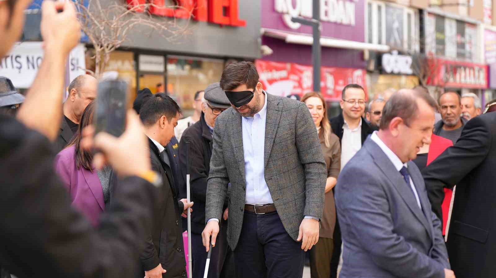 Tarsus Belediye Başkanı Ali Boltaç, ‘Beyaz Baston Görme Engelliler Farkındalık Haftası’ etkinliğine katılarak, siyah göz bandı takıp beyaz bastonla yürüyerek görme engelli bireylerin karşılaştığı zorluklara dikkat çekti.