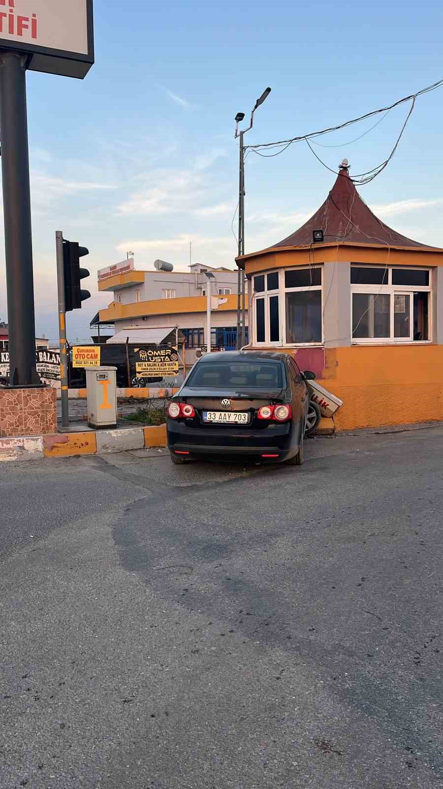 Mersin’in Tarsus ilçesinde kırmızı ışıkta duramayınca yola çıkan tıra çarpmamak için direksiyonu çeviren otomobil sürücüsü, aracıyla güvenlik kulübesine çarparak durabildi. Kazada otomobil sürücüsü yaralandı.