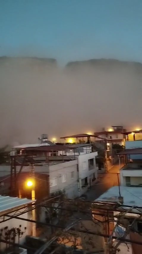 Hatay’ın İskenderun ilçesinde kent merkezine yakın bir noktada bulunan taş ocağında gerçekleştirilen patlamayla Modernevler Mahalle’sini toz bulutu kapladı. Yoğun toz bulutu etkili olduğu anları mahalle sakinleri cep telefonu kamerasıyla kayıt altına aldı.