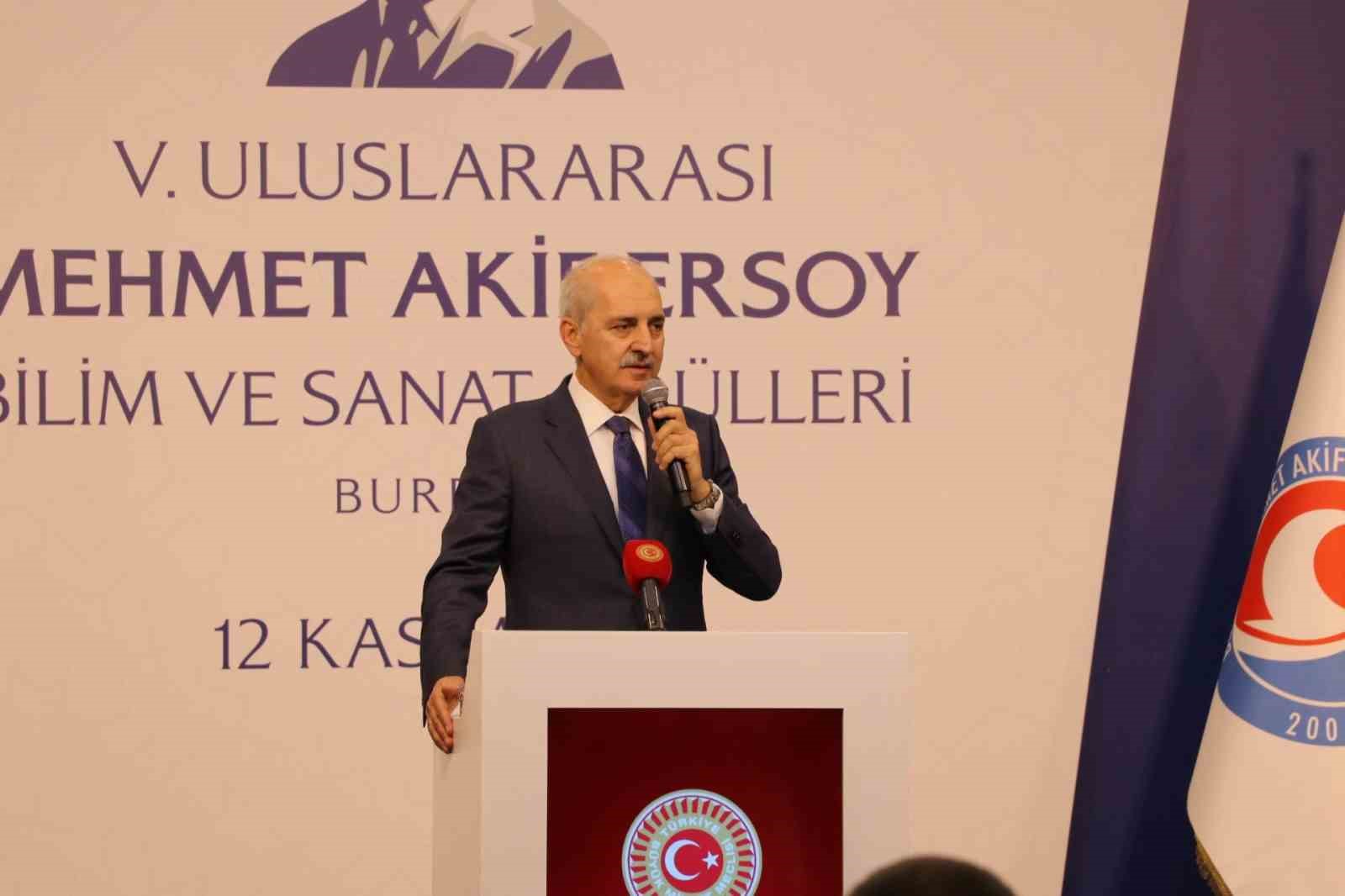 Burdur’da Beşinci Mehmet Akif Ersoy Bilim ve Sanat Ödülleri programı, TBMM Başkanı Prof. Dr. Numan Kurtulmuş’un katılımıyla gerçekleştirildi. Programda farklı alanlarda seçilen sanatçı, akademisyen ve sanayicilere ödül takdim edildi. Programda konuşan TBMM Başkanı Prof. Dr. Numan Kurtulmuş, “Soykırımı icra edenler sadece İsrail’in Netanyahu ve çetesi değildir diyerek, “Bu soykırıma yardımcı olanlar, destek olanlar, orduları ve siyasetleriyle, Birleşmiş Milletler (BM) dahil uluslararası alanda verdikleri destekleriyle bu soykırıma yardımcı olanlar dünkü emperyalistlerin bire bir aynısıdır” şeklinde konuştu. Kurtulmuş, “Dün başka bir kılıkla, başka bir isimle geliyorlardı, bugün başka bir adla geliyorlar. Oyun hiç değişmiyor. Yine bu coğrafyada, mesela 1917’de Osmanlı, Filistin topraklarından çekilmek zorunda kaldığında, İngiliz’in yaptığı ilk şey Filistin topraklarında Yahudi yerleşimcilere yer açmaktır. Bugün de İsrail’e koşulsuz destek verenlerin bu coğrafyada yaptıkları en önemli şey İsrail’in toprak işgallerine seyirci kalmak, ona zemin hazırlamak ve ona destek olmaktır. Oyun hiç değişmiyor. Oyunu bozmak için de Allah’ın izniyle Türkiye olarak bütün irademizle ortadayız ve bu mücadeleyi sürdürmeye gayret ediyoruz” ifadelerine yer verdi.