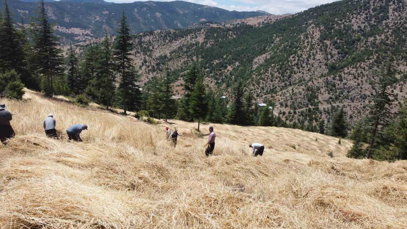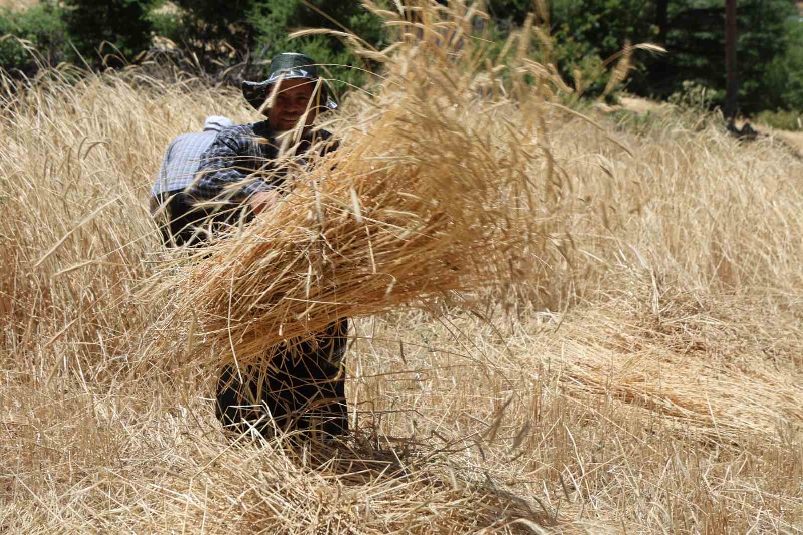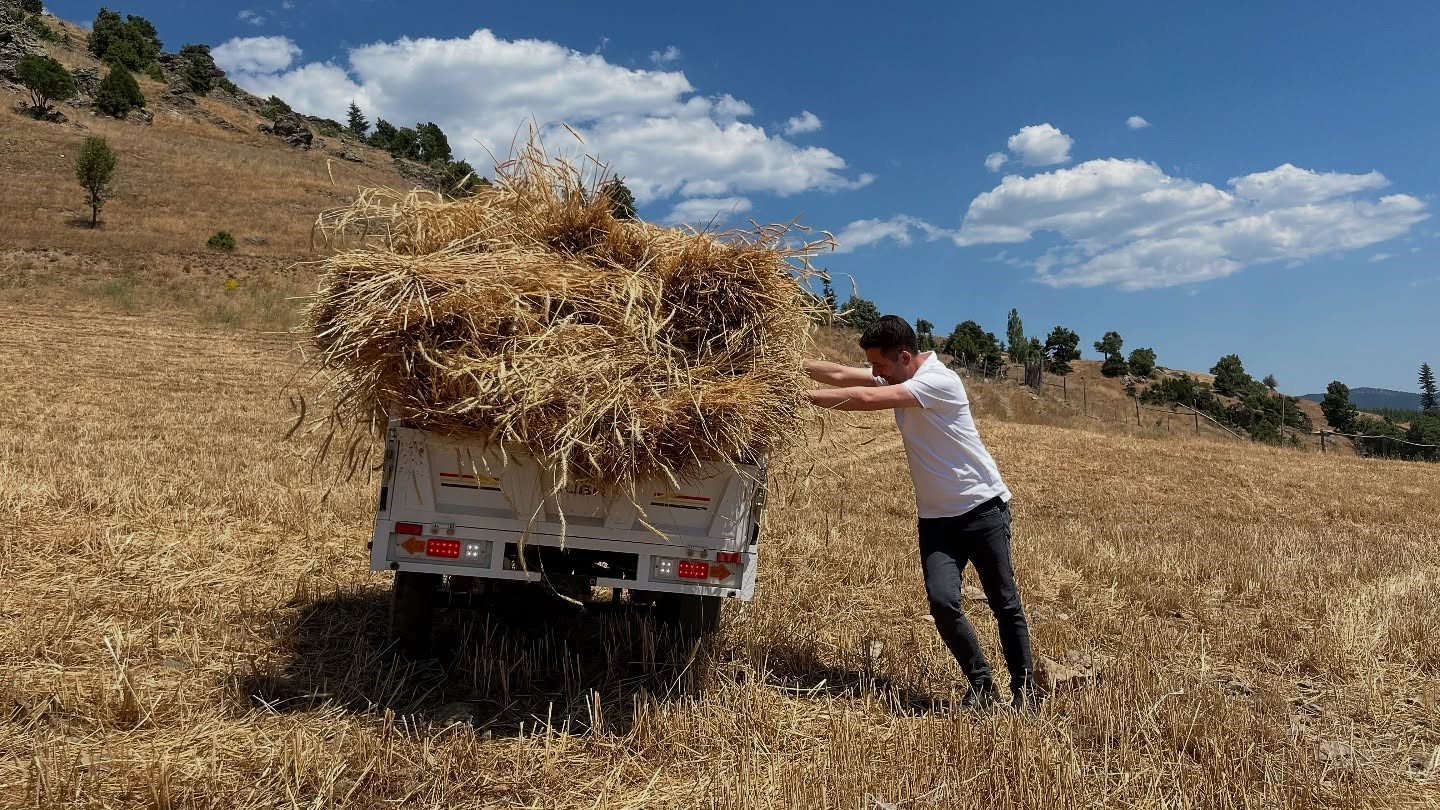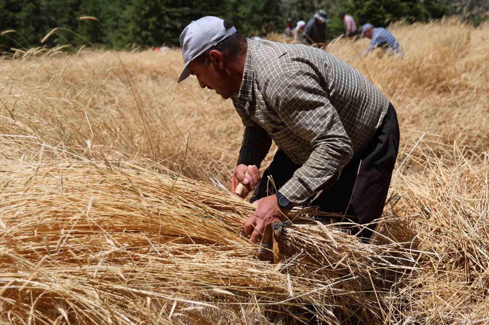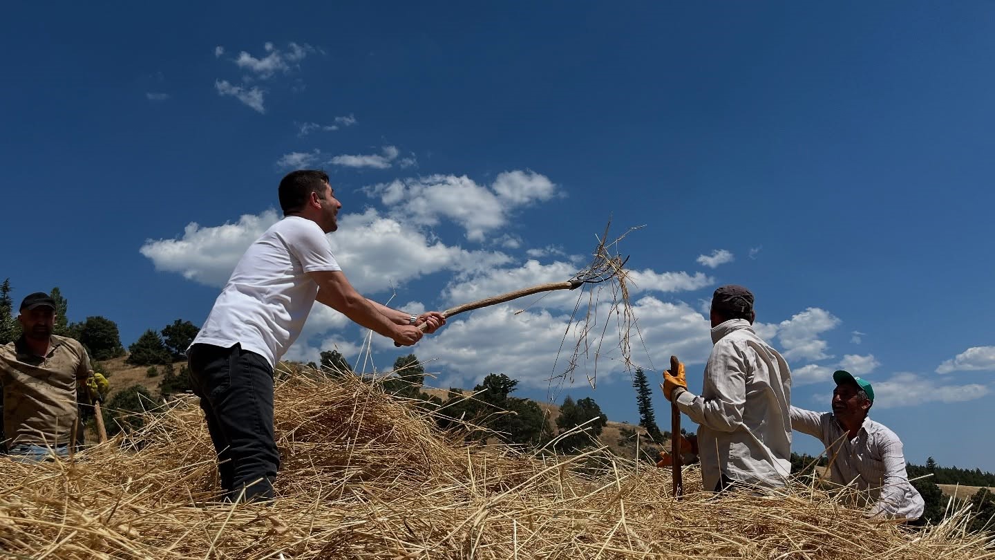 Köyde her yıl imece usulüyle hasat yapıldığını kaydeden Kenan Ersin, “Ata usulüyle, komşularla birlikte imece usülü hasat gerçekleştiriyoruz. Sabah saat 08.00’de başlayıp, akşam ezanında bırakıyoruz. Bu buğday çeşidini satmıyoruz. Öğütüp un yapıyor, ekmek pişiriyoruz. Hasat sonrası yığınlar oluşturuluyor, ardından desteler halinde patosa giriyor” dedi.