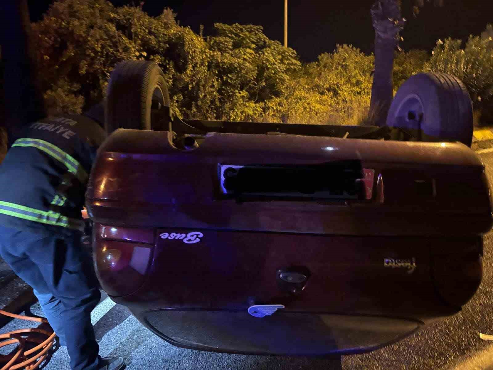Hatay’da takla atarak ters dönen otomobilin sürücüsü yaralandı.