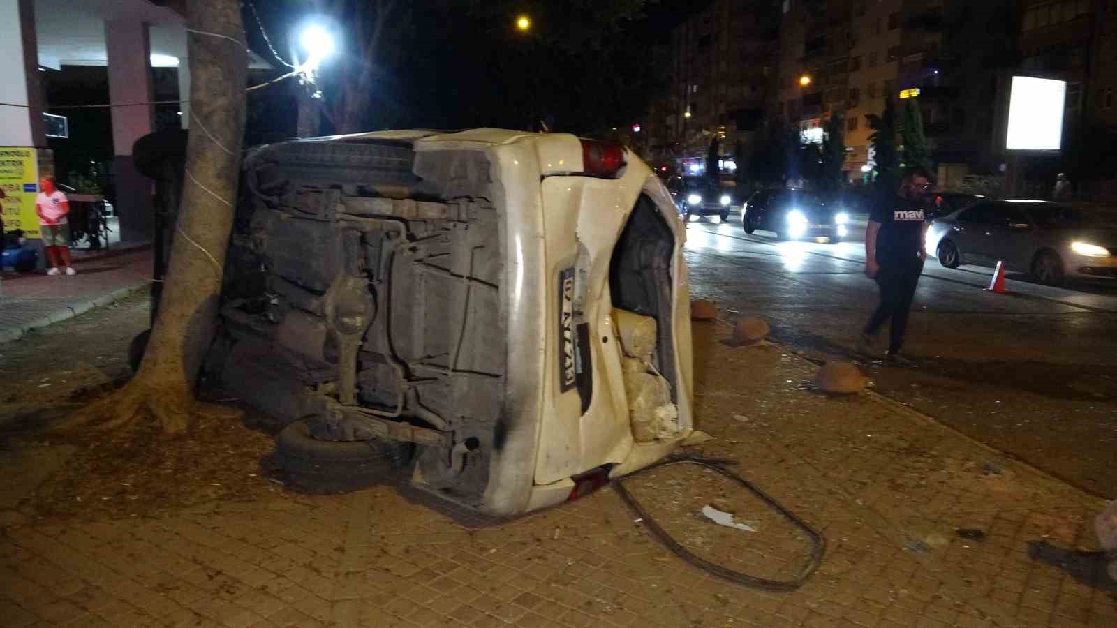 Antalya’da ticari taksi ile minibüsün çarpışması sonucu meydana gelen kazada 1’i ağır 3 kişi yaralandı. Çarpmanın etkisiyle minibüs yan yatarak kaldırımdaki ağaca çarparak durabildi.