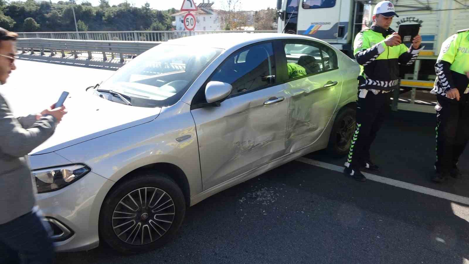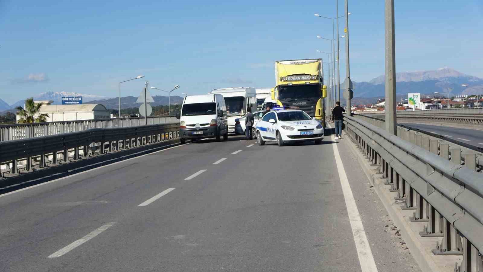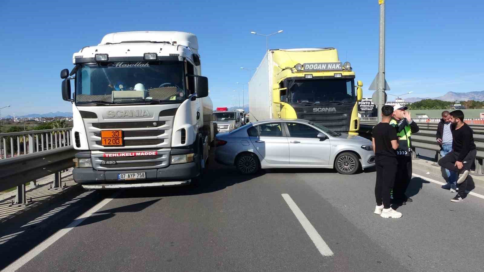 Tırın çarptıktan sonra önüne aldığı otomobilde bulunanlar kazayı yaralanmadan atlattı. Kazanın ardından Batı Side Köprülü kavşağında Alanya istikametine trafik tek şeritten kontrollü olarak sağlanırken, trafik ekiplerinin gelmesi ve yoldaki araçları kaldırmasının ardından trafik akışı normale döndü.