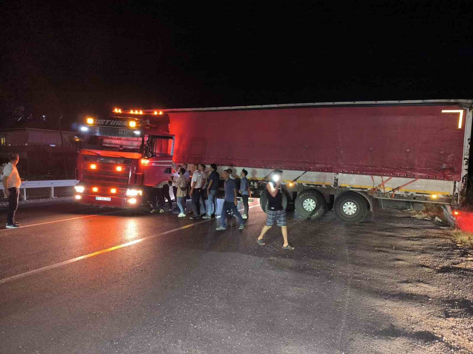 Tırın yolu kapatması nedeniyle D-400 Karayolu’nda uzun araç kuyrukları oluşurken, Gazipaşa istikametine trafik akışı durma noktasına geldi.