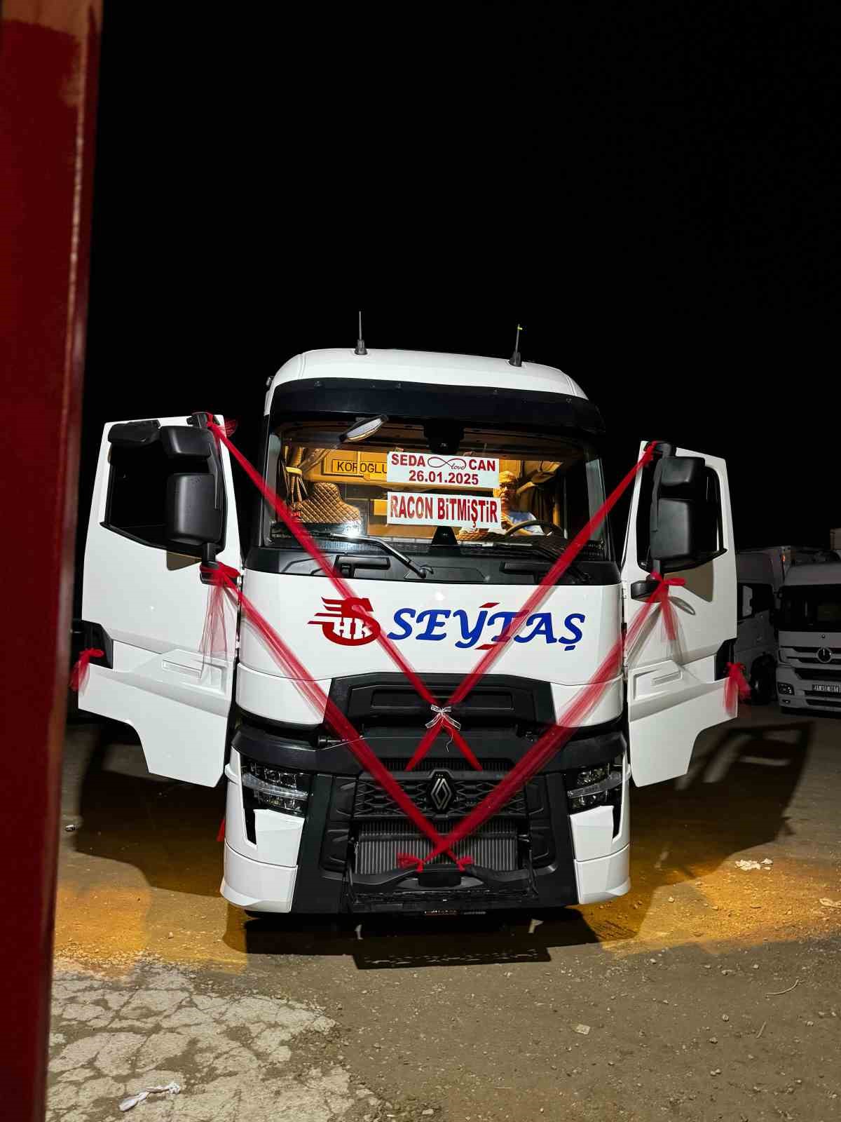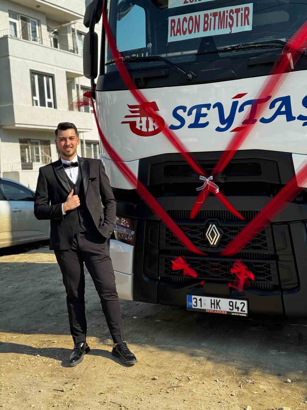 İki yıldır şoförlük yaptığı tırı süsleyerek gelin arabası yapan Mehmet Can Kör, son seferi düğününde yaptığını belirterek, “Babam tır şoförlüğü yapıyordu. Babamdan dolayı tırlara karşı çok ilgim vardı. Tırla yollara çıkmayı çok istiyordum. Ben de tır şoförü oldum. 2 yıldır tır şoförlüğü yaptım. 2 yılının ardından eşimle birlikte evlilik kararı aldık. Ona unutamayacağı bir sürpriz yapmak istedim. Mutluluk ile ilgili son seferimizi attık ve tırı gelin arabası yaptık. Ondan sonra da işi bıraktım. Eşimle birlikte çarşıda esnafız. Tırla düğünümde son seferimi attım, tarif edilemeyecek bir duyguydu. Deprem şehri Hatay’da, çok fazla hafriyat kamyonu var. Düğüne gelen hafriyat şoförleri çok mutlu oldu. Onlar konvoyda kornayla eşlik ettiler. Herkes çok şaşırdı. Kimse tırı getirip süsleyeceğime inanmıyordu. Tır şoförlüğünü özlüyorum ama şimdiki hayatımdan memnunum” dedi.