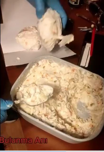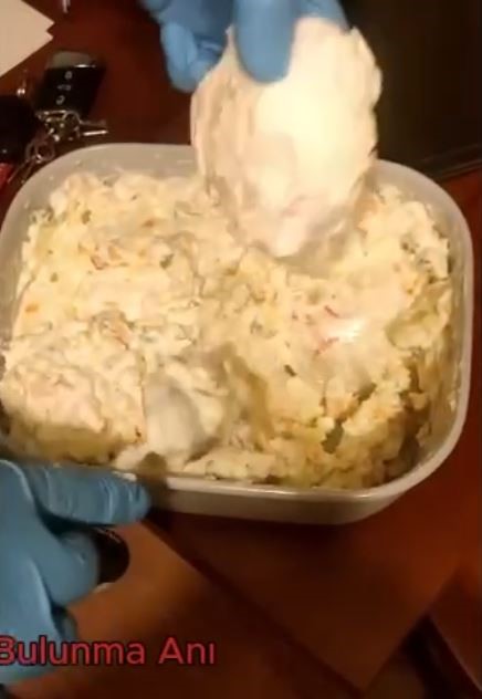 Öte yandan baskın anı güvenlik kamerasına yansıdı. Ekipler motosikletteki iki şüpheliyi yakaladığı anların yer aldığı görüntülerde, ele geçirilen bazı uyuşturucu maddelerin bir kap içerisinde Rus salatasına gizlendiği ve ekiplerin arama çalışması yaparken tespit etmesi görüntülere yansıdı.