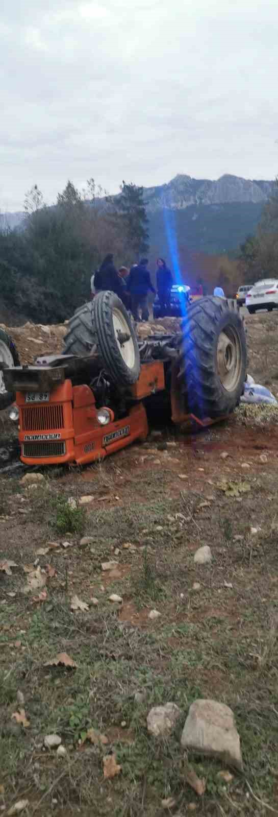 Kaza; Beşkonak Mahallesinde yaşandı. Edinilen bilgiye göre zeytin toplamadan dönen Ramazan Karaca’nın kullandığı 48 PS 676 plakalı traktör Teveklibük mevkiinde orman yolunda seyir halindeyken sürücüsünün direksiyon hakimiyetini kaybedip devrildi. Kazada; traktörün altında kalan 64 yaşındaki Ramazan Karaca olay yerinde yaşamını yitirirken traktörde yolcu olarak bulunan kızı Nurgül Kaya yaralandı. 112 Sağlık ekiplerinin olay yerindeki müdahalesinin ardından ambulansla Serik Devlet Hastanesine kaldırılan Nurgül Kaya’nın hayati tehlikesinin olmadığı bildirildi.