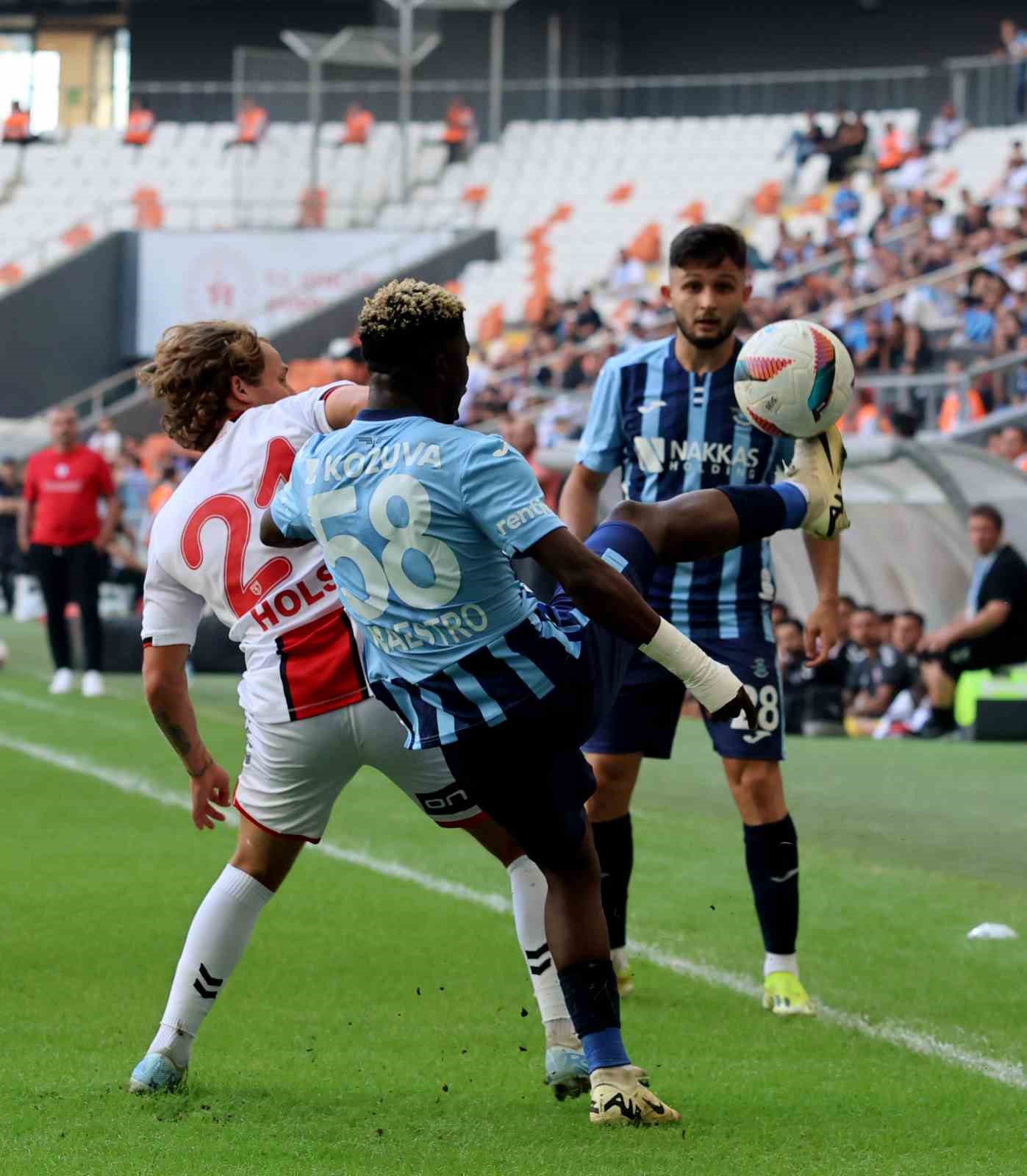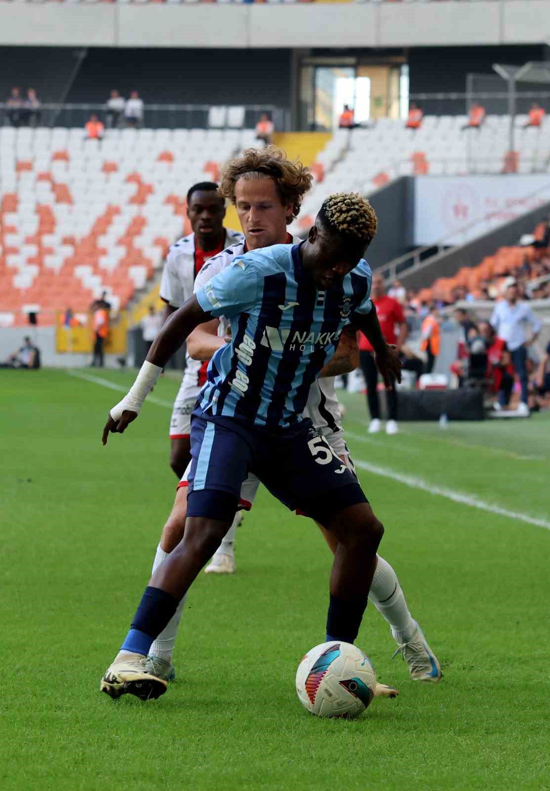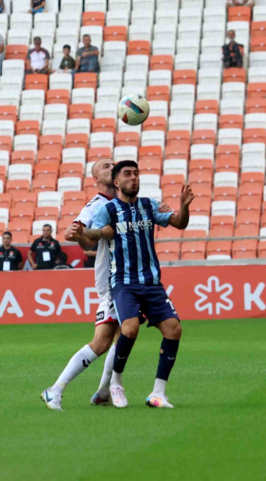 1. dakikada Adana Demirspor’da Ali Yavuz, sol kanattan yapılan ortaya arka direkte voleyle vurdu, top üstten dışarıya gitti.