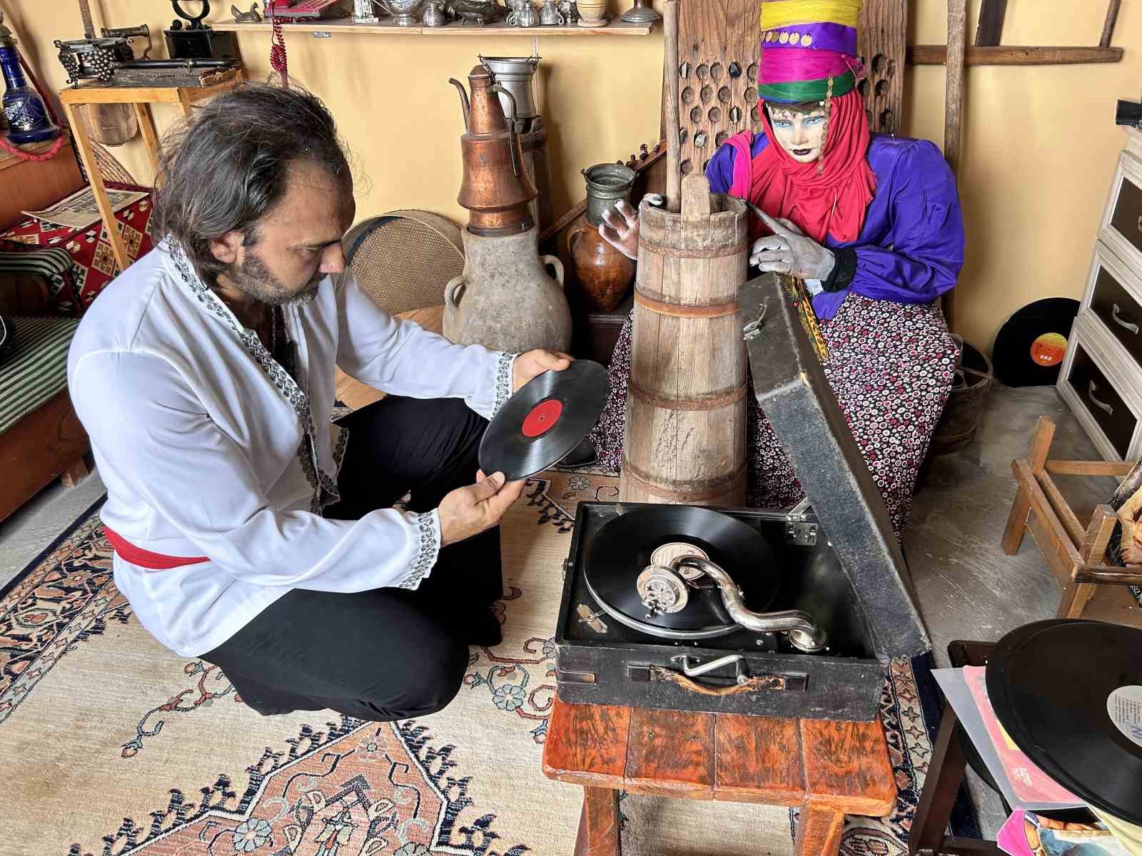 Denizciler Mahallesi’nde yaşayan ve vatandaşların ilgi odağı olan 38 yaşındaki Abdullah Cila, “Yaklaşık 1995 yılından bu yana nostalji müzik aletlerine ve plak çalarlara hevesim olduğu için böyle bir odada biriktirmek istedim. Nostalji ve kültüre bağlı yaşamak adına tabii ki. Daha öncelerden sanatçıların plaklarını koleksiyon haline getirdim. 6 Şubat depreminde oldukça hasar aldı kullanmış olduğum taş plaklar, sandıkta saklamayı becerdim ama diğer aletlerimin birçoğu hasar aldı. Kırıldı geri tamir edip yerine koyduk ama eski tadında kalmadı. Koleksiyonumuz yıllardır devam ediyor. 1926 model gramofonu yanılmıyorsam Manisa’dan bir arkadaştan almıştım. Yaklaşık bundan 10 yıl önce orijinal bir şekilde çalıyor, dinliyoruz gramofondan çalan şarkı sanatçı sanki yanımızda gibi hiç elektriğe hiç kayda girmemiş. Ses olduğu için kurma kollu olduğu hiç elektrik olmadığı için zembereğiyle çalışıyor tamamen” dedi.