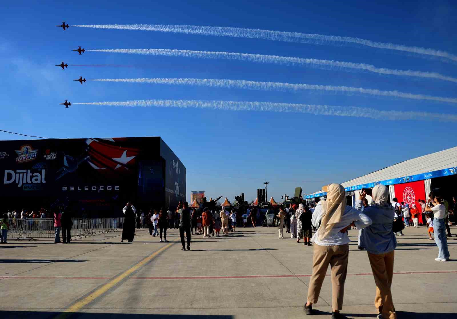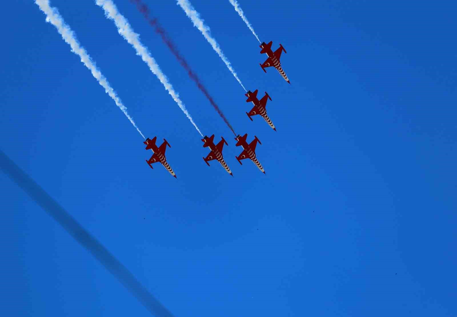 Adana’da düzenlenen TEKNOFEST’te Türk Yıldızları’nın gösterisi adeta gökyüzünü renklendirirken izleyenlerin nefeslerini kesti.