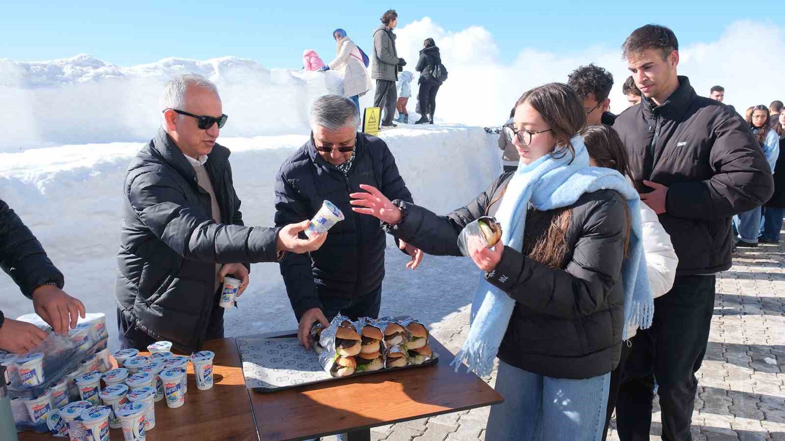 Öğrenciler zirvede kar topu oynayıp kar yığınları üzerinde kayarak keyifli bir gün geçirdi. Kar topu oynayan öğrencilerin oyununa dahil olan Başkan Topaloğlu öğrencilerin isteğini kırmayarak bol bol hatıra fotoğrafı çektirdi.