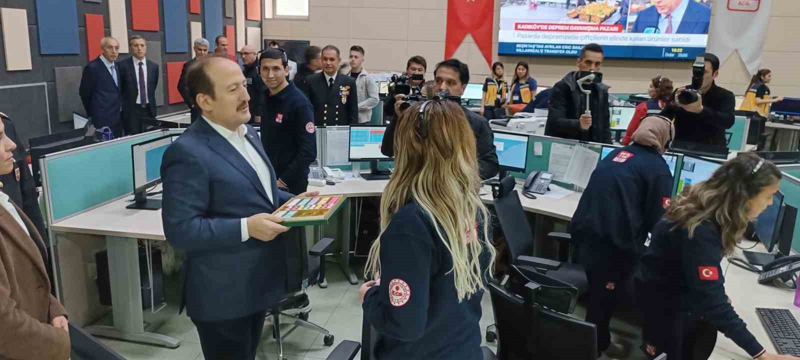 Vali Pehlivan, 112 Acil Çağrı Merkez Birimini ziyaret ederek, yeni yıl dolayısıyla il geneli alınan tedbirler hakkında açıklamalarda bulundu. Emniyet Müdürü, Jandarma Komutanı, Sahil Güvenlik Komutanı ve İl Sağlık Müdürü ile bazı bürokratların da eşlik ettiği ziyarette Vali Pehlivan, görevli personelin yeni yılını kutlayarak çikolata ikram etti. Yılbaşı dolayısıyla ülke genelinde olduğu gibi Mersin’de de bir insan hareketliliği ve buna bağlı olarak araç hareketliliği yaşanacağını söyleyen Pehlivan, “Bizler Mersin’de gerek emniyet sorumluluk bölgesinde, gerek jandarma sorumluluk bölgesinde, gerekse sahil güvenlik sorumluluk bölgesinde gerekli planlamaları yaptık. Ve bu gece yaşanacak yoğunluklara bağlı herhangi bir problemin oluşmaması için gerekli tedbirleri almış bulunuyoruz” diye konuştu.