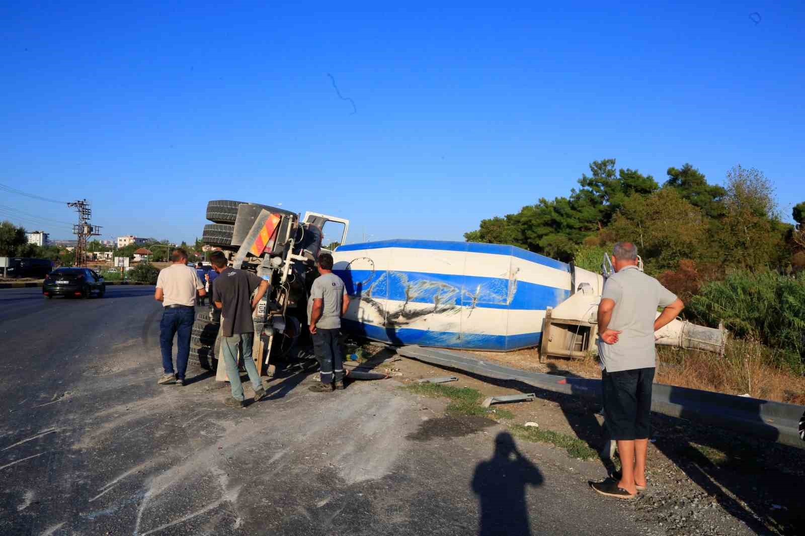 Antalya’da virajı alamayan beton mikseri yan yattı. Araçta sıkışan sürücü itfaiye ekipleri tarafından bulunduğu yerden çıkartılarak hastaneye kaldırıldı.