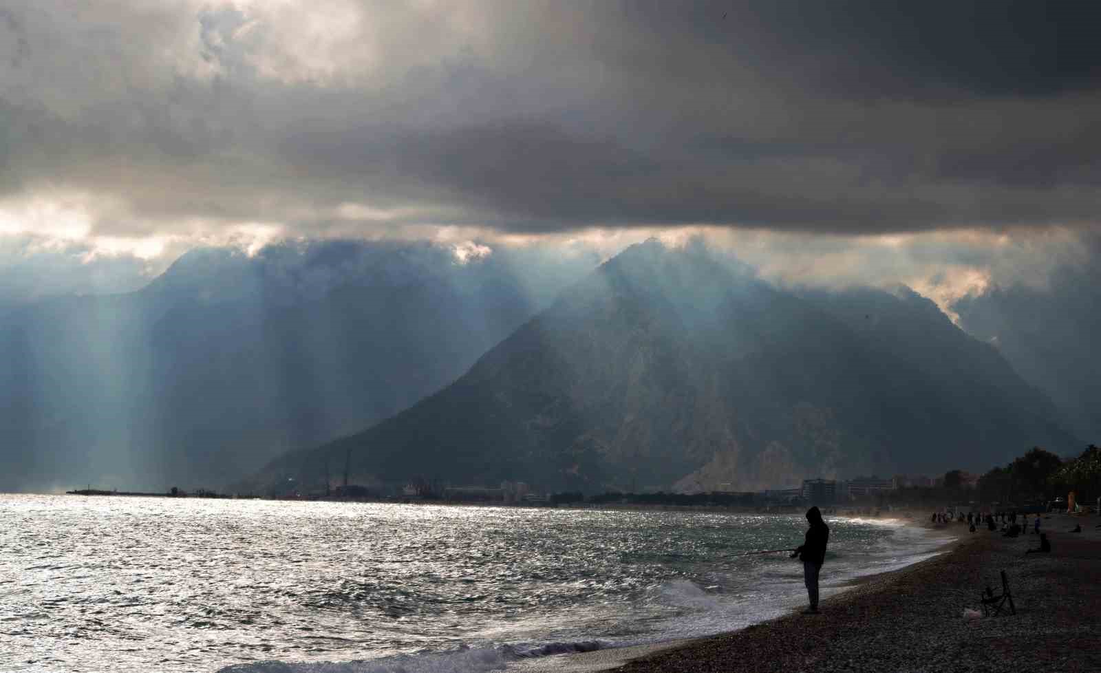 Meteoroloji Bölge Müdürlüğü’nün kuvvetli yağış uyarısı yaptığı Antalya’da, yağmur bulutlarının arasından süzülen ışık hüzmesi sonrası muhteşem manzarayı gözler önüne serdi. Hafta sonunu değerlendirmek isteyen vatandaşlar da sahillerde vakit geçirdi.