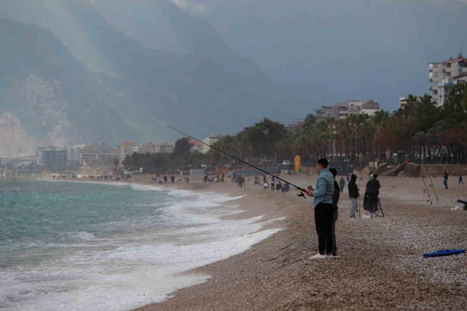 Hafta sonu için Meteoroloji Bölge Müdürlüğü tarafından gök gürültülü şiddetli yağış ve yüksek kesimlerde kar yağışı uyarısı yapılan Antalya’da yağmur sabah saatlerinden itibaren etkisini göstermeye başladı. Yer yer kuvvetli yağışın ardından öğlen saatlerinde kısa süreli güneşli hava açarken, bu durumu fırsat bilen Antalyalılar da kendilerini Konyaaltı Sahiline attı. Bazı vatandaşlar yanlarında getirdikleri kamp sandalyeleri ile birlikte aileleriyle birlikte sahilde oturmayı tercih ederken, kimileri yürüyüş yapmayı, kimileri ise balık tutmayı tercih etti. Meteroloji Bölge Müdürlüğü yetkilileri yerel yağışların Antalya merkez ilçelerinde sabah saatlerine kadar süreceği uyarısında bulundu.