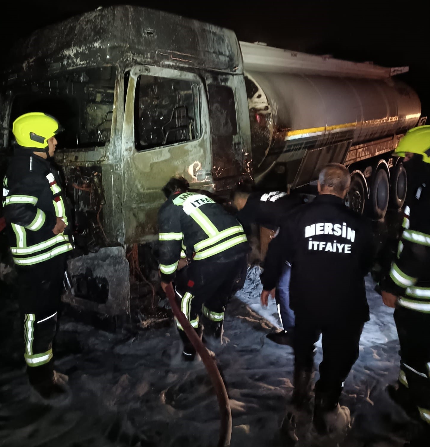 Mersin’de akaryakıt dolu tanker yandı, itfaiyenin müdahalesiyle bir facia yaşanmadan alevler söndürüldü.