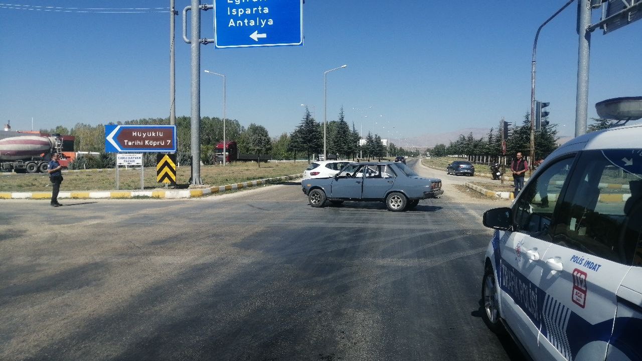 Isparta’nın Yalvaç ilçesinde kavşağa kontrolsüz giren iki otomobilin çarpışması sonucu 1 kişi yaralandı.