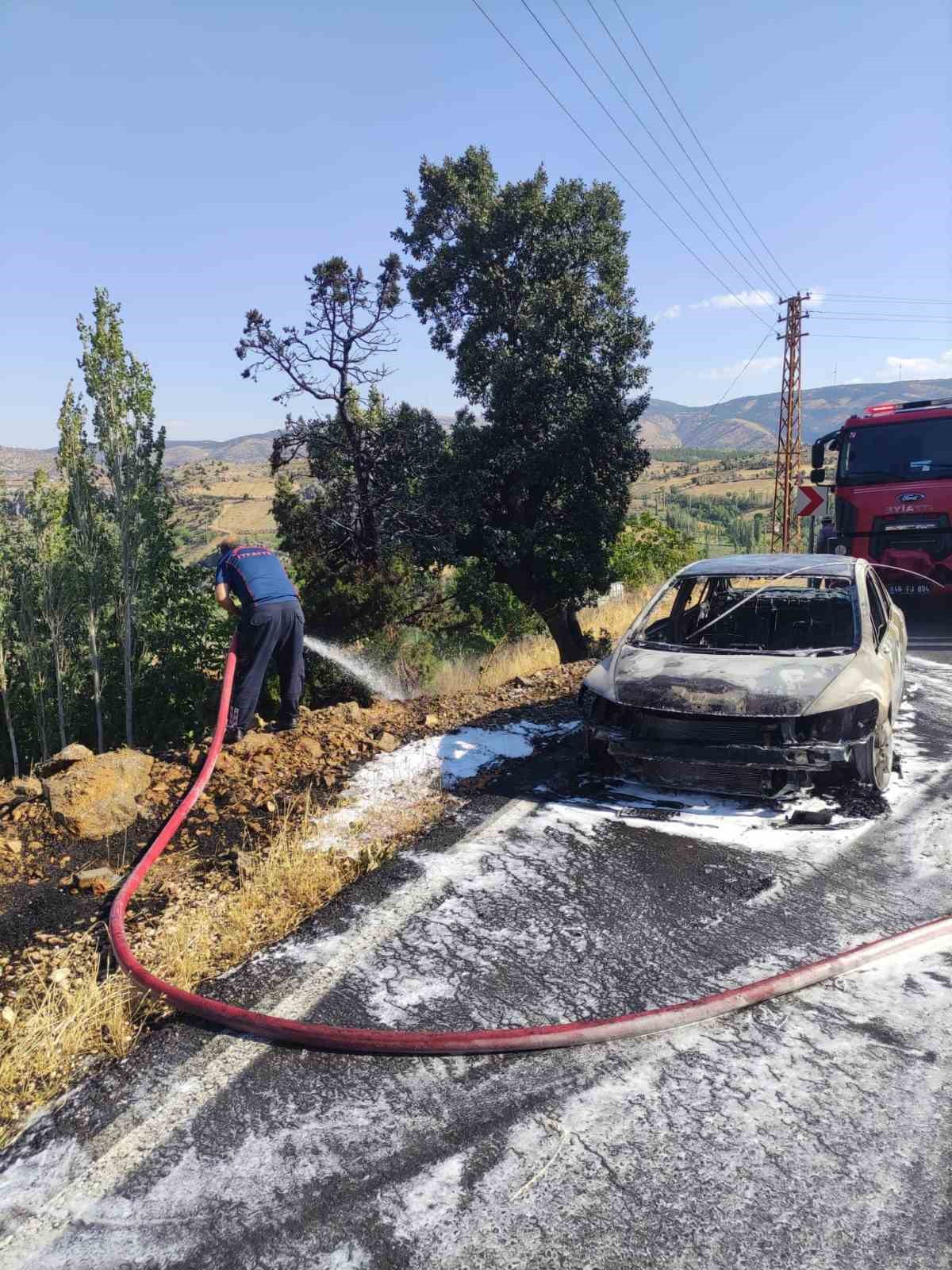 Kahramanmaraş’ta bir otomobilde çıkan yangın sonrası otomobil kullanılamaz hale geldi.
