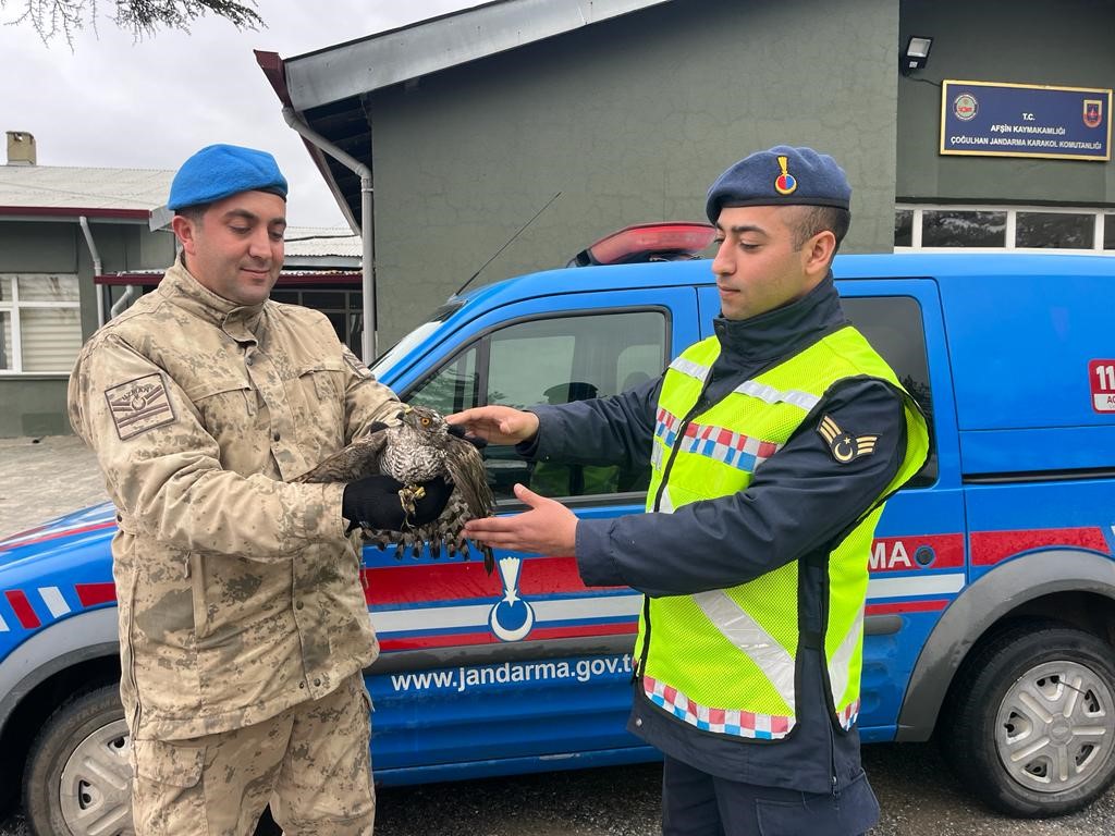 Kahramanmaraş’ın Afşin ilçesi Çoğulhan Asayiş Jandarma ekipleri yerde buldukları yaralı atmacaya sahip çıktı.