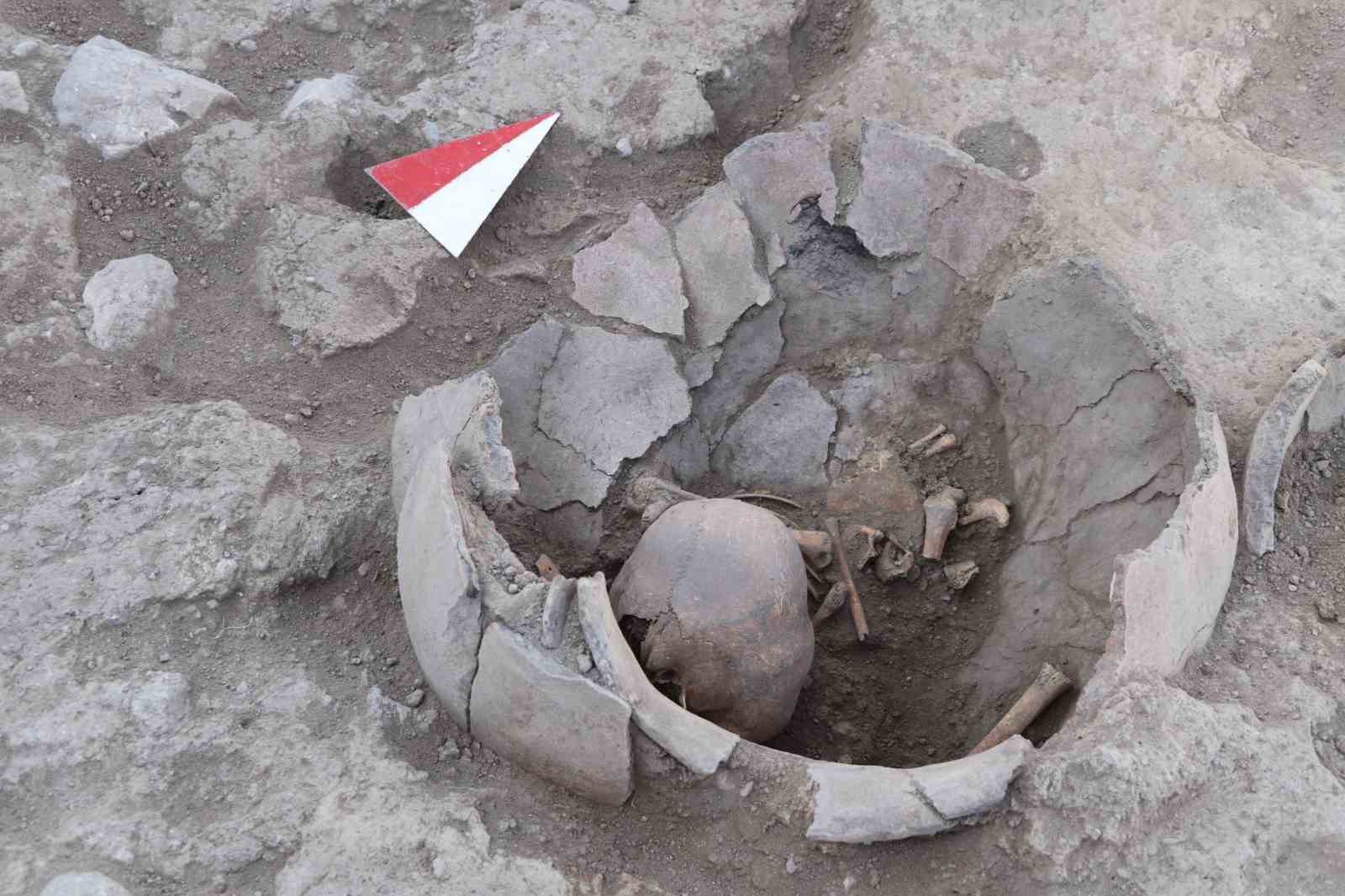 Milattan önce 4 bin yılına tarihlenen ve bir bebeğe ait olan dağılmış başka bir mezarda da 820 boncukla yapılmış bir kolyeye ulaştıklarını dile getiren Baştürk, M.Ö. 6 bin yıllık Geç Neolitik dönem yapılarını ortaya çıkarıldığını, bu tabakada da ata kültüyle bağlantılı olarak yaşadıkları evin tabanı altına gömülen bir kafatası bulduklarını bildirdi.