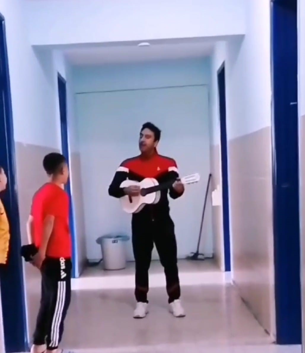 Adana’da Şehit Bayram Ali Yardımcı Yatılı Bölge Okulunda müzik öğretmeni Kayahan Kaya, öğrencilerini gitar çalıp şarkı söyleyerek uyandırıyor. Öğretmenin şarkısıyla güne uyanan öğrenciler de şarkıya eşlik etmeye başlayınca ortaya güzel görüntüler çıkıyor.