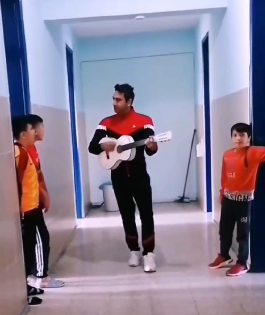 Adana’nın Saimbeyli ilçesinde Şehit Bayram Ali Yardımcı Yatılı Bölge Okulunda müzik öğretmeni Kayahan Kaya’nın eline gitarını alarak öğrencilerini “Günaydın” şarkısı ile uyandırdığı anlar herkesin beğenisini kazandı. Müzik öğretmenini ezgileri ve gitar sesi ile uyanan öğrenciler koridorda öğretmenlerine eşik ederek güne başlıyor.
