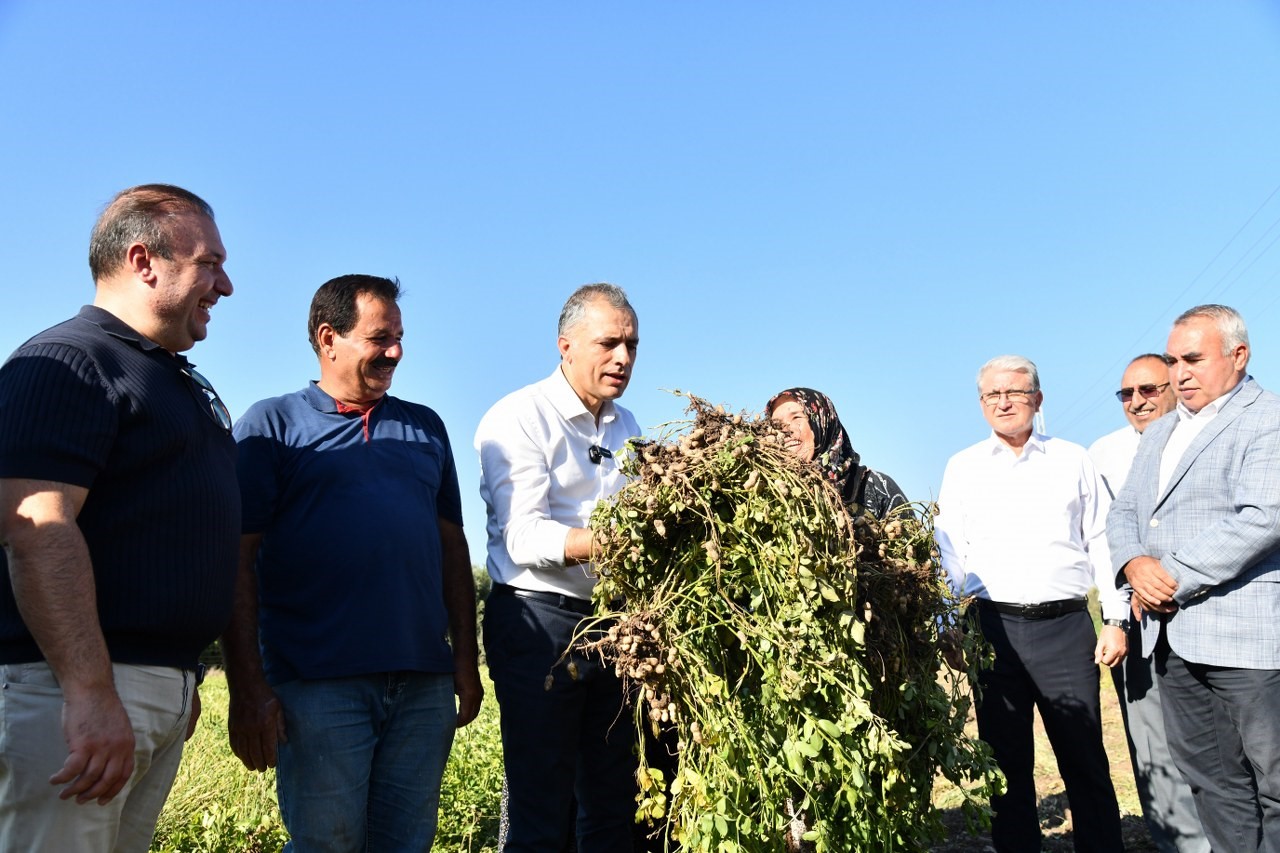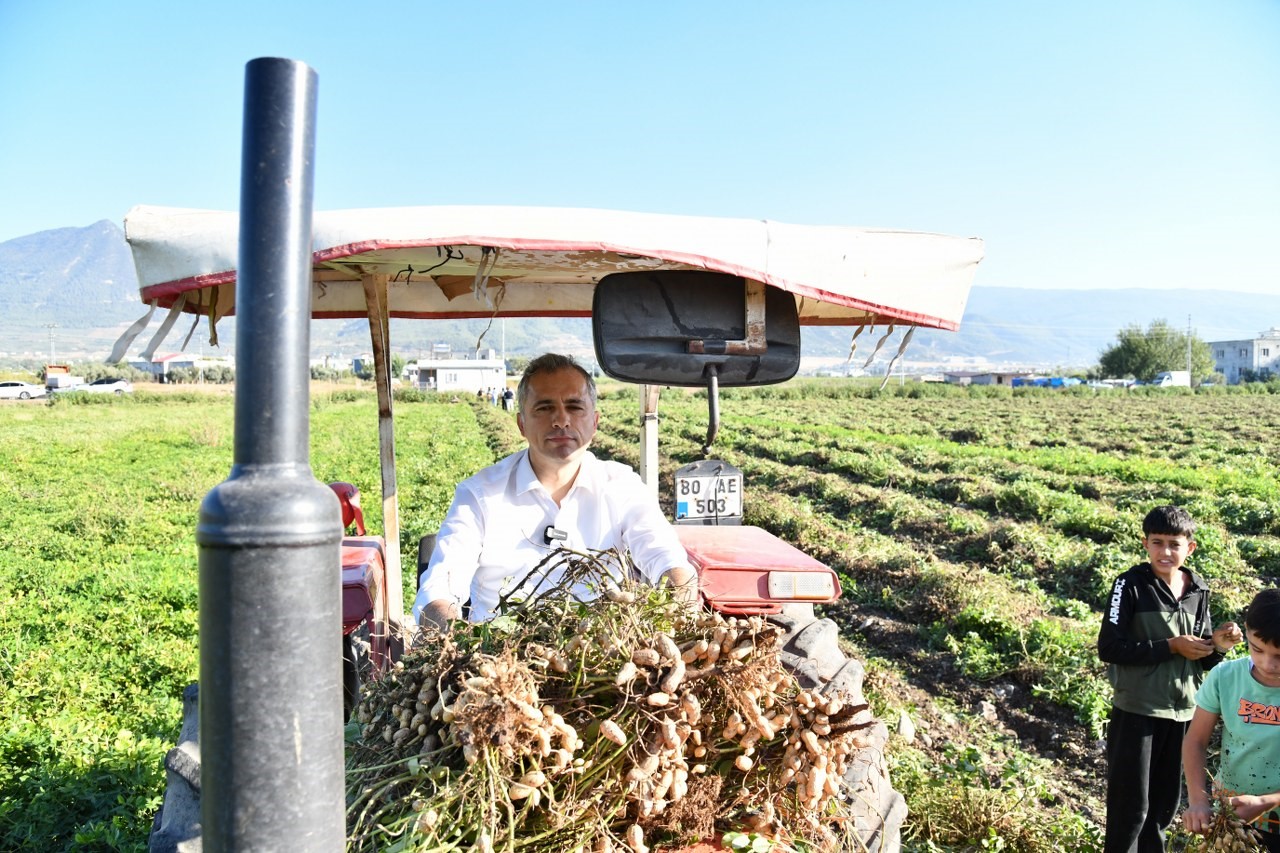 Osmaniye Belediye Başkanı İbrahim Çenet’te, merkeze bağlı Aslaniye Köyü’ndeki yerfıstığı tarlasına giderek, çiftçi ve tarlada çalışan işçiler ile bir araya geldi. Başkan İbrahim Çenet, “Bugün bu tarlamızdaki fıstık hasadına hep beraber konuk olduk. Osmaniye’mizde şuan fıstık hasadı yapılıyor. Yerfıstığının ana vatanı Türkiye’mizde başkenti Osmaniye. Bugün bizde 18 bin dekarlık alanda, sulama birliğimizin de 270 üyesiyle buraya ekimleri sonrasında bugün hasatları gerçekleştiriliyor. 14-15 Nisan’da başlayıp 15 Mayıs’a kadar devam eden o ilk dikimlerin ürünleri olan yerfıstıklarımızı bugün tarladan söküyoruz” dedi.