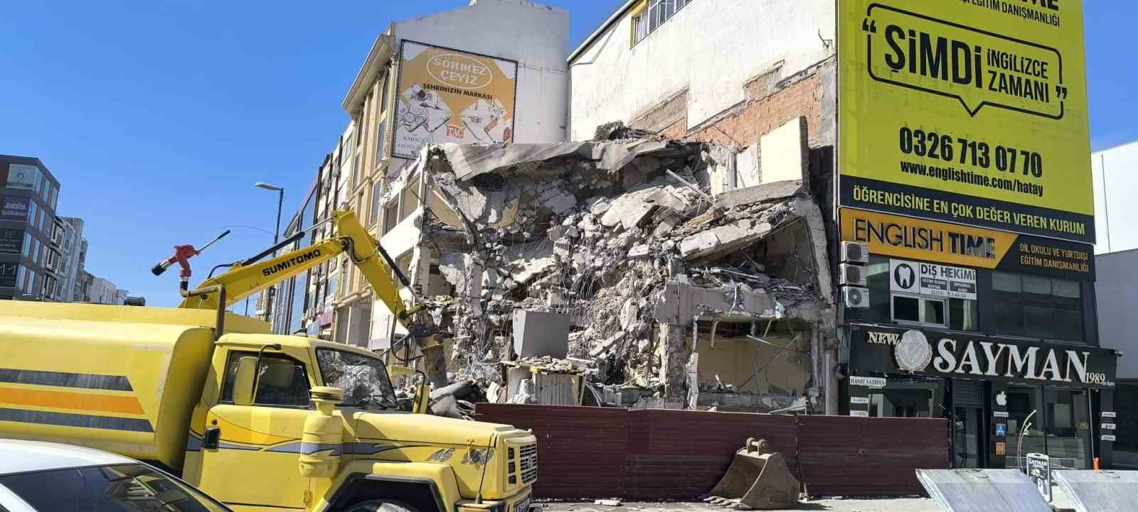 Hatay’ın Dörtyol ilçesinde depremde ağır hasar alan binanın yıkımı esnasında, başına moloz parçası isabet eden yıkım ekibi görevlisi operatör yaralandı.