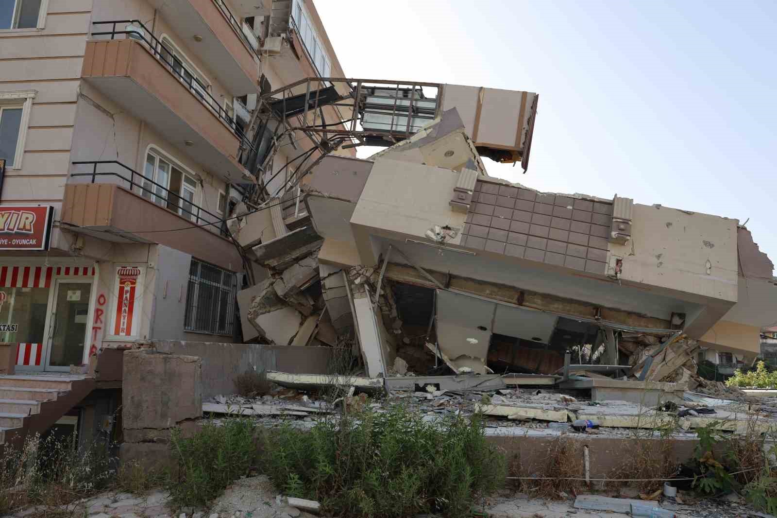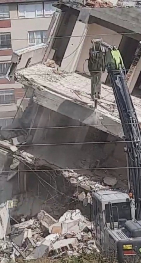 Kahramanmaraş merkezli depremlerde ağır hasar alan Hatay’da, mahkeme süreci sona eren binaların yıkım ve enkaz kaldırma çalışmaları aralıksız sürüyor. Defne ilçesi Aşağıokçular Mahallesi’nde 6 katlı binanın yıkımı için bina sakinleri bir firmayla anlaştı ve yıkım için çalışmalar başladı. Yıkım ekiplerinin çalışması esnasında iş makinesinin darbesiyle yıkılan 6 katlı bina, yan tarafında bulunan 6 katlı az hasarlı binanın üzerine devrildi. 6 katlı binanın devrilme esnasında etrafı toz bulutları kaplarken vatandaşlar panik oldu. 6 katlı binanın yan tarafa devrilmesi sırasında yaralanan kimse olmazken orta hasarlı binada hasar oluştu. Yıkım esnasında meydana gelen sesle birlikte vatandaşlar deprem korkusunu bir daha yaşadı.