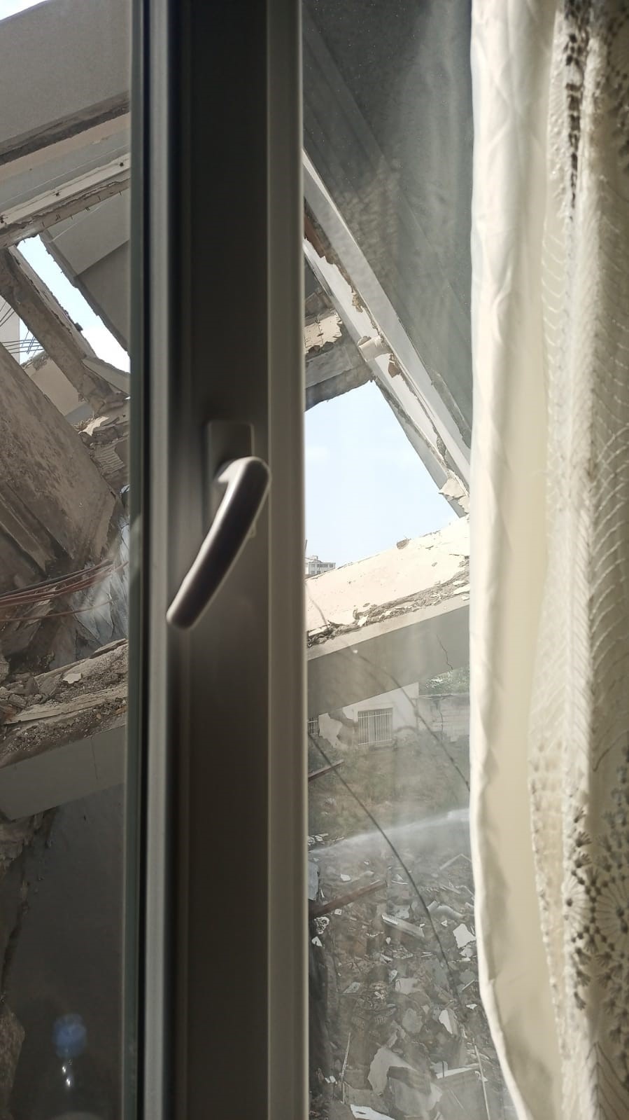 Yıkım esnasında evinin zarar gördüğünü belirten Şerif Önal ise, “İzmir’den geldik baktık bina yıkımı var evimize bizi sokmadılar. Anneme geldim, eşyalarımızı bıraktık ve tekrar gittim. Balkon demiri kırılmış yan balkonun duvarı yıkılmış, cam patlamış. Evimize giremiyoruz. Annemlere geldik burada kalacağız” şeklinde konuştu.