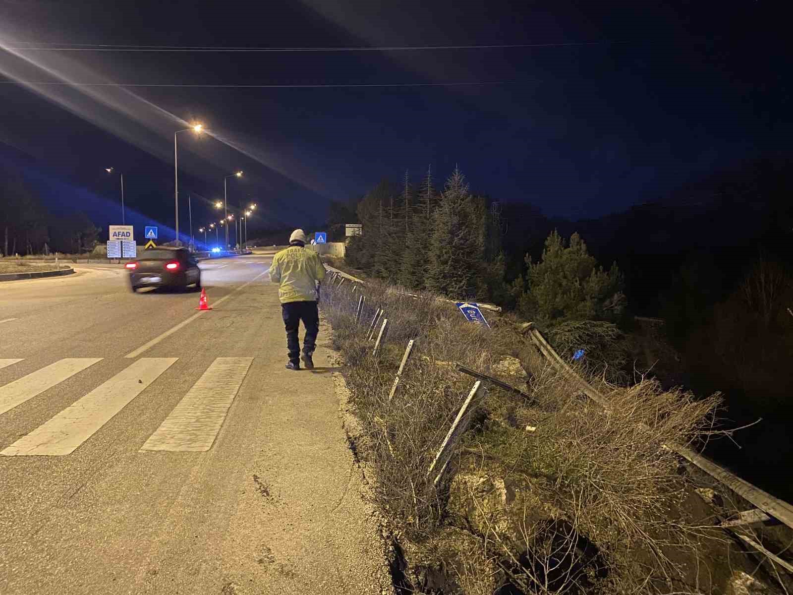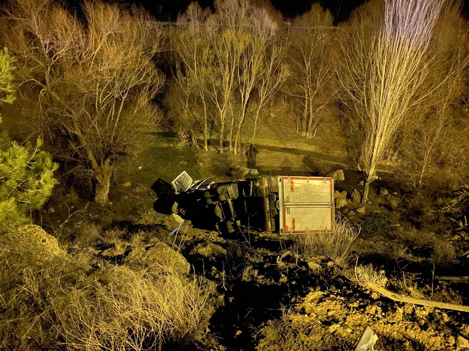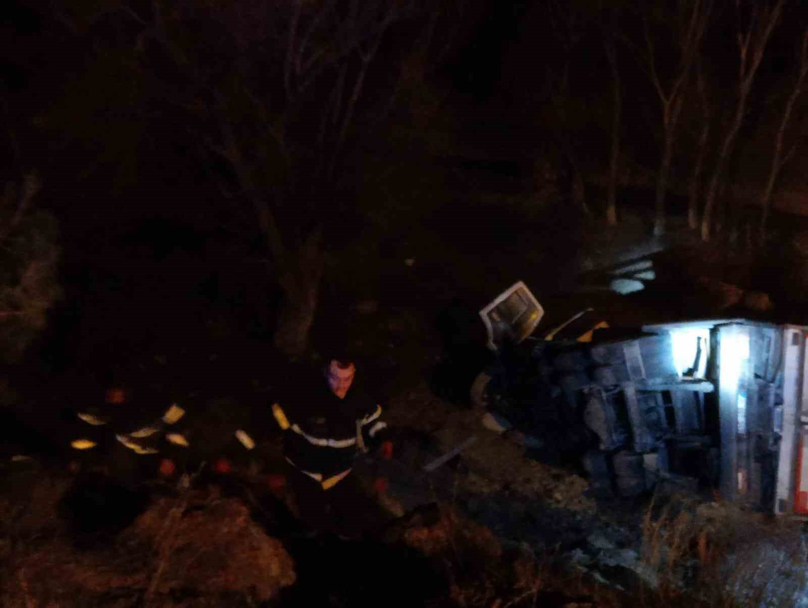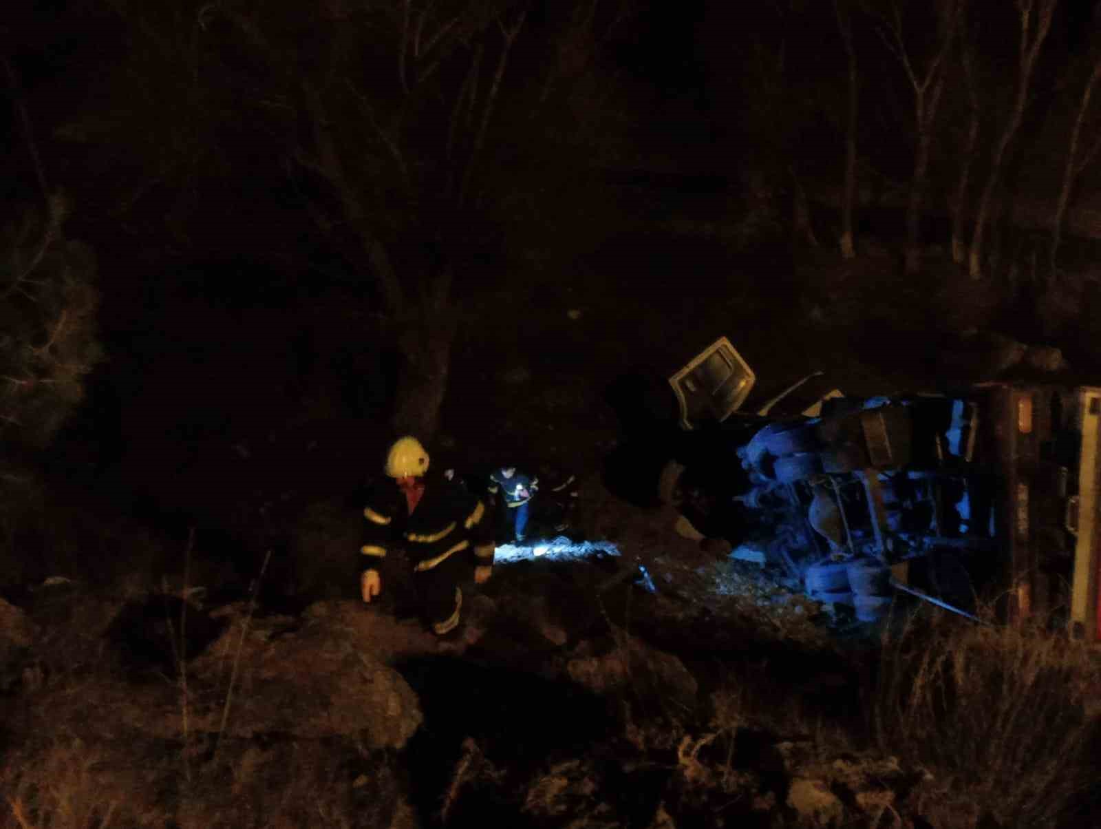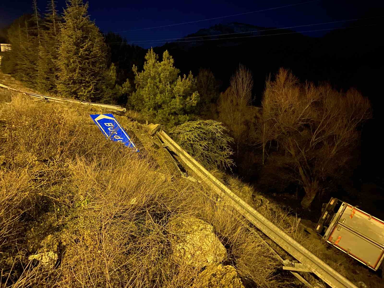Burdur-Antalya karayoluna Büğdüz istikametinden yokuş aşağı inerken virajı alamayan kamyonun bariyerleri kırarak şarampole uçması sonucu 1 kişi yaralandı.